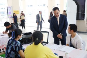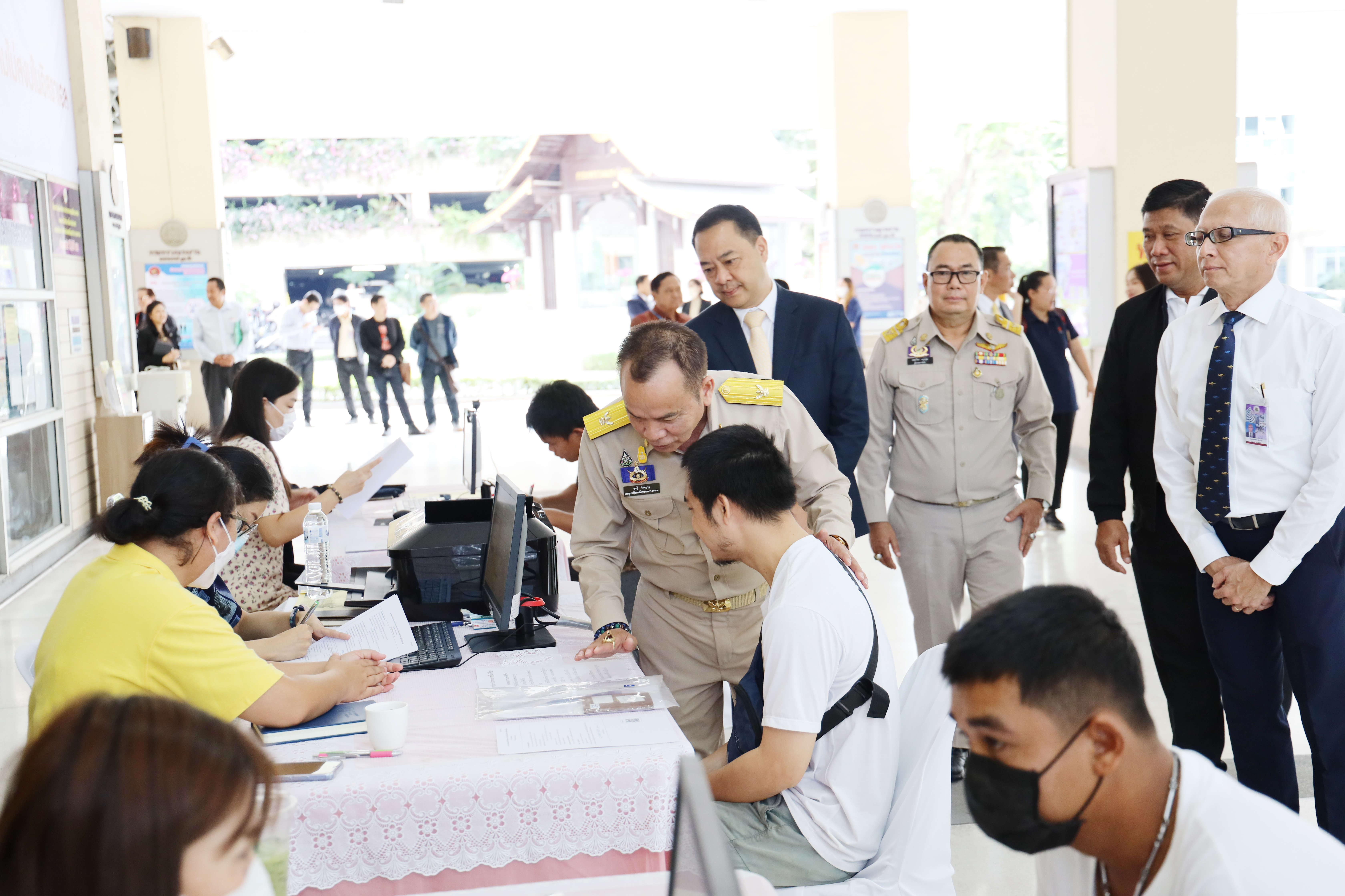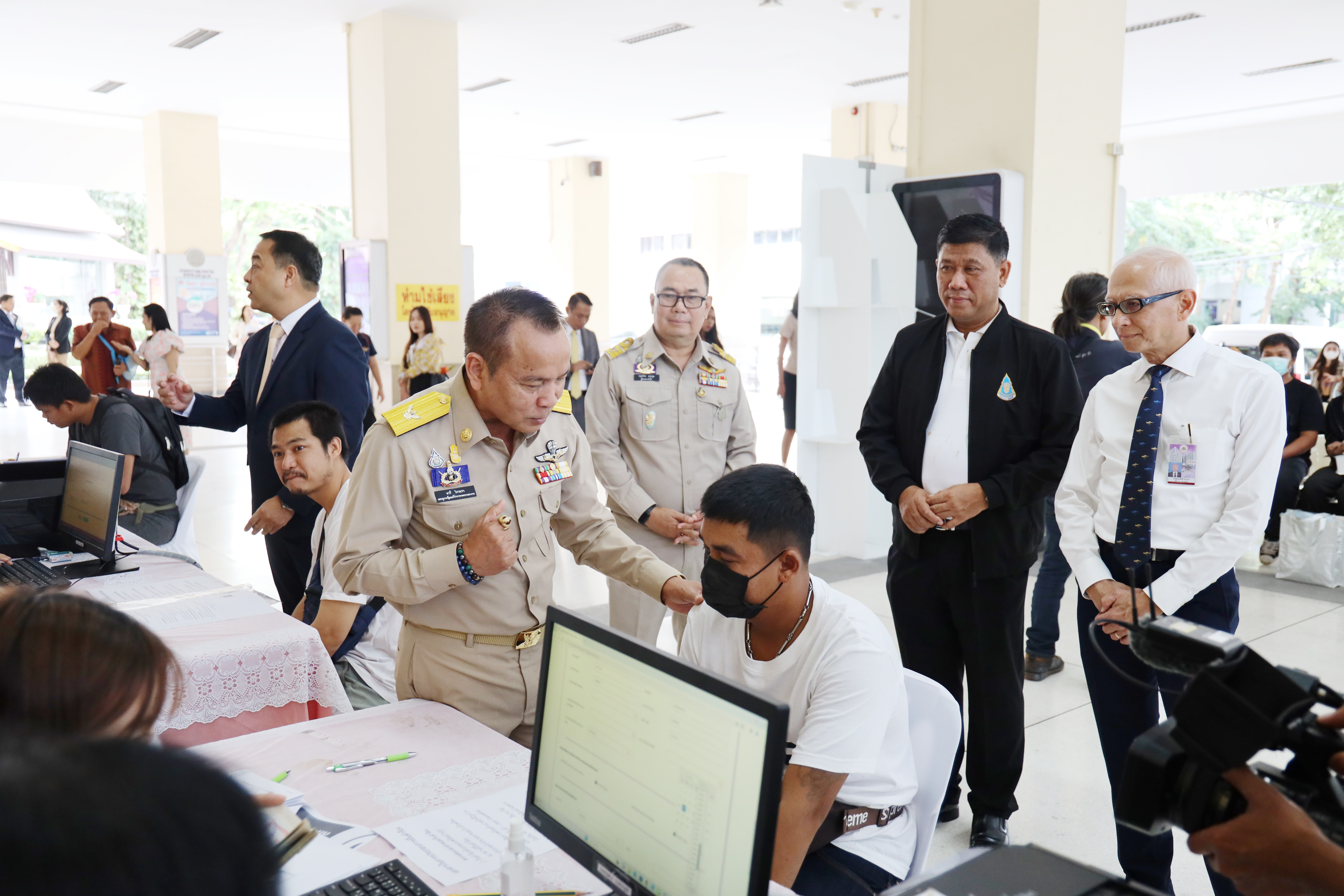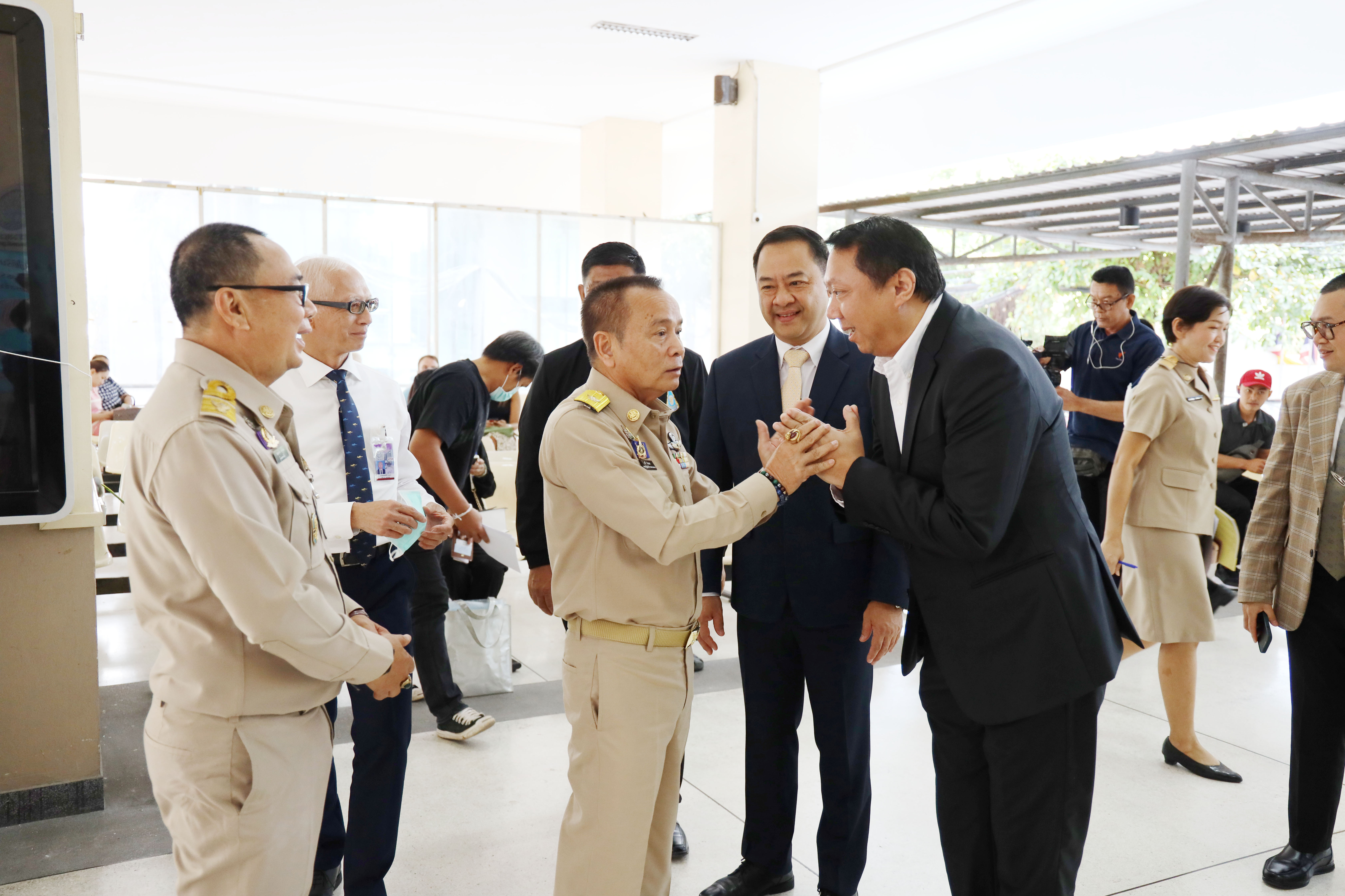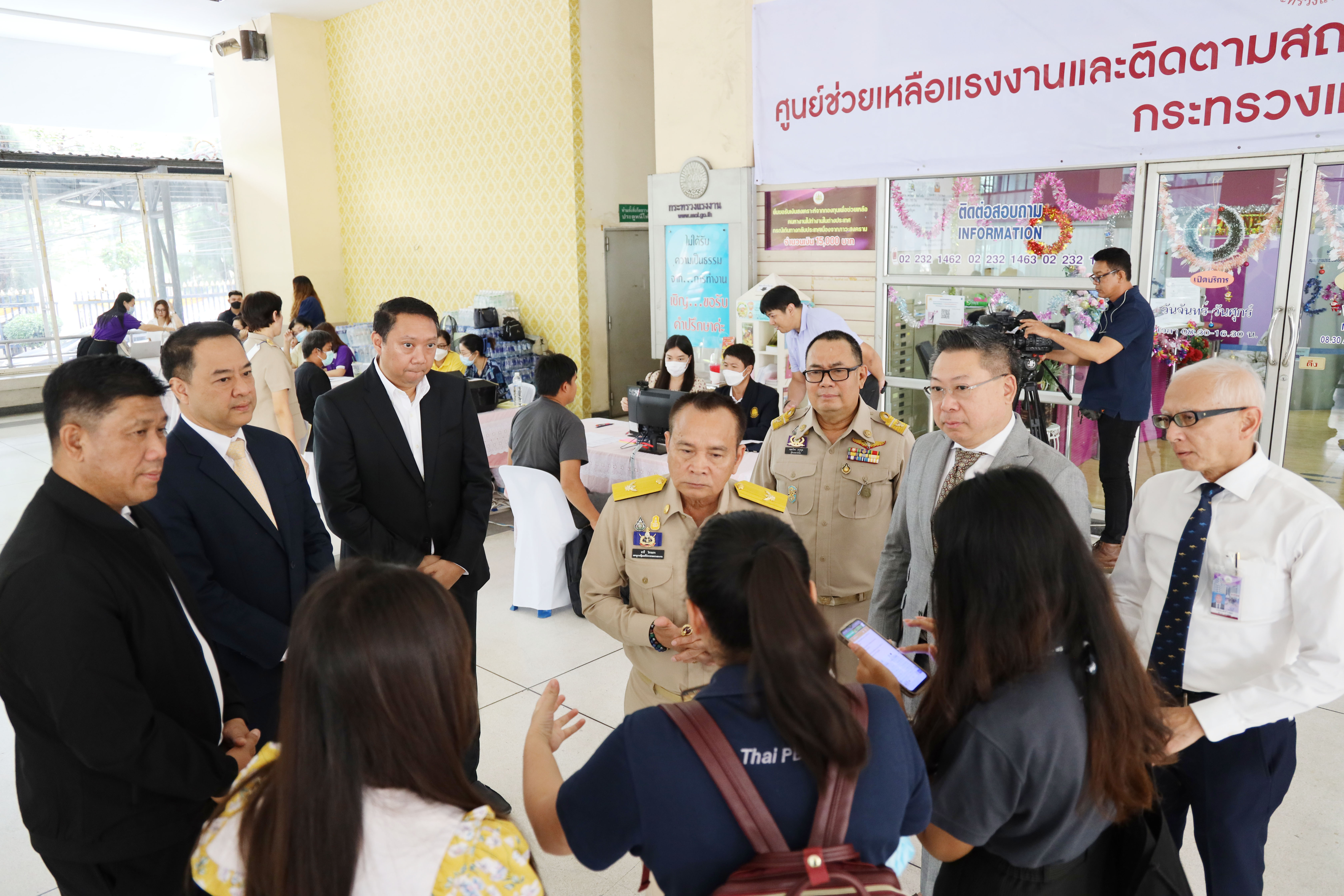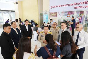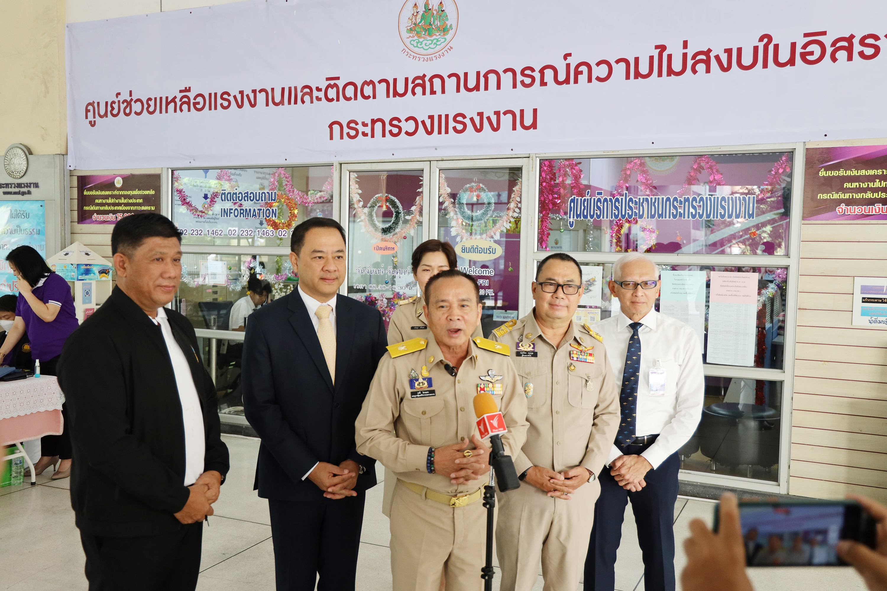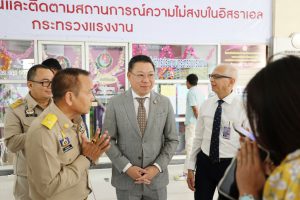 On December 18, 2023, the Labour Minister, Mr. Phiphat Ratchakitprakarn, assigned the Secretariat to the Labour Minister, Mr. Aree Krainara, paid a visit and gave encouragement to Thai workers affected by the unrest in Israel, who came to apply for compensation for 50,000 Baht for initial relief from a lack of income. The Ministry of Labour’s Inspector-General, Mr. Samat Pattamasukon, the Minister Counselor (on Labour) at the Royal Thai Embassy in Tel Aviv, Mr. Kitthana Srisuriya, and relevant agencies joined at the Labour Assistance and Israel War Monitoring Center, 1st floor, Ministry of Labour.