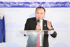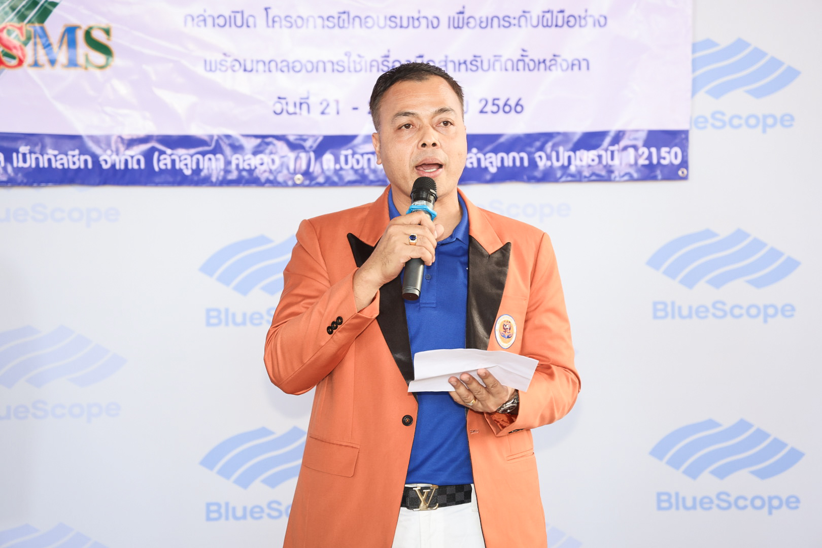 “ผมขอให้ผู้เข้ารับการฝึกอบรมทุกท่านตั้งใจฝึกอบรม ซักถาม และรับความรู้จากการฝึกอบรมในครั้งนี้ และหวังเป็นอย่างยิ่งว่า ทุกท่านที่เข้ามาอบรมในวันนี้ จะได้รับความรู้ใหม่ๆ ทักษะเกี่ยวกับการติดตั้งและใช้งานเมทัลชีท อย่างถูกวิธี เพื่อนำไปพัฒนาการทำงานของทุกๆ ท่านให้ดียิ่งขึ้น เป็นการยกระดับทักษะฝีมือที่สูงขึ้น สามารถนำความรู้ไปพัฒนาอาชีพ และเป็นช่างให้บริการแก่ลูกค้าในการใช้งานผลิตภัณฑ์เมทัลชีทอย่างถูกต้อง รวมทั้งได้รับคัดเลือกเป็นช่างติดตั้งเมทัลชีท ตามมาตรฐานของบลูสโคป จะทำให้เกิดการจ้างงานเพิ่มมากขึ้นในทุกๆ ปี และความหลากหลายของผลิตภัณฑ์เมทัลชีท จะทำให้เราต้องเข้าใจ หลักการใช้งาน และหลักการติดตั้งแผ่นเมทัลชีท อย่างถูกต้อง และปลอดภัยตามหลักมาตรฐานที่กำหนด” นายอารีฯ กล่าวในท้ายที่สุด