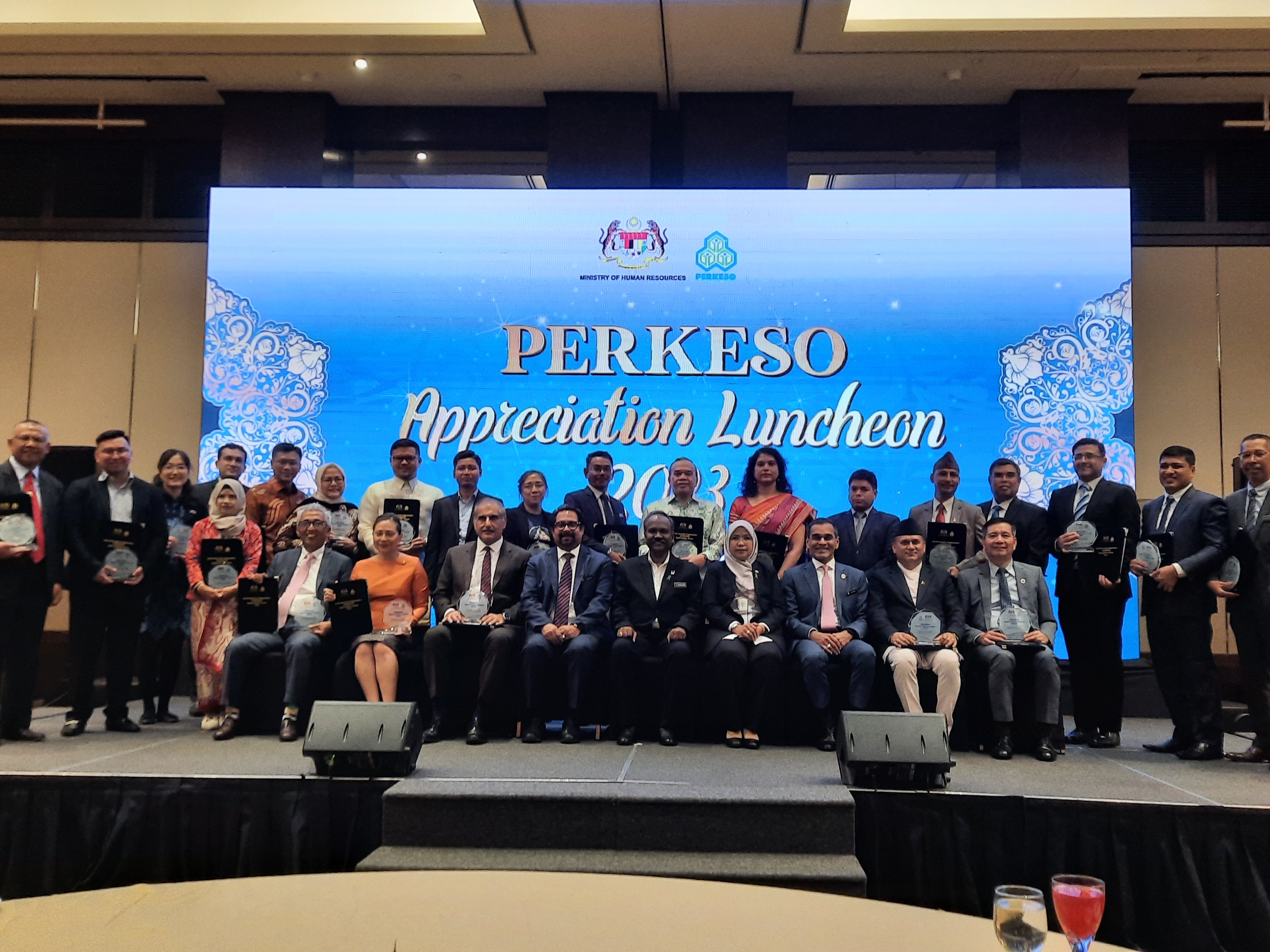 เอกอัครราชทูต ณ กรุงกัวลาลัมเปอร์ อัครราชทูต ที่ปรึกษา (ฝ่ายแรงงาน) และที่ปรึกษา (ฝ่ายแรงงาน) เข้าร่วมพิธีมอบรางวัล PERKESO Appreciation Luncheon 2023