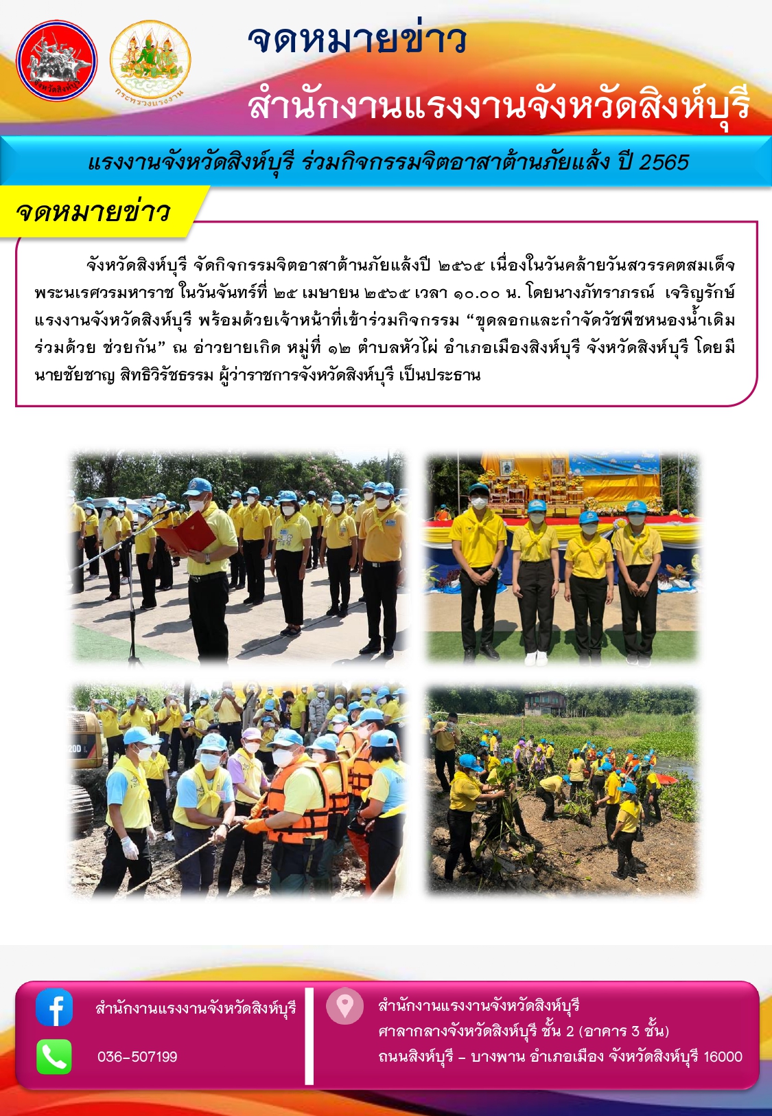 เเรงงานจังหวัดสิงห์บุรี ร่วมกิจกรรมจิตอาสาต้านภัยเเล้ง ปี 2565