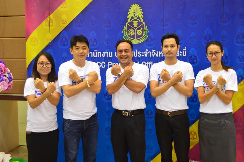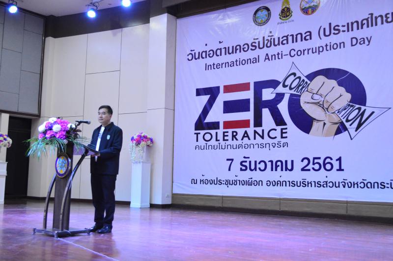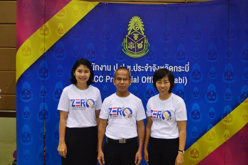 วันที่ ๗ ธันวาคม ๒๕๖๑ เวลา ๐๘.๓๐ น. นางสาวหทัยชนก พูลศิริ แรงงานจังหวัดกระบี่และหัวหน้าส่วนราชการ รวมถึงบุคลากรในสังกัดกระทรวงแรงงานจังหวัดกระบี่ เข้าร่วมกิจกรรมงานวันต่อต้านคอร์รัปชันสากล (ประเทศไทย) ภายใต้แนวคิด “Zero Tolerance คนไทยไม่ทนต่อการทุจริต” ซึ่งจัดพร้อมกันทั้งในส่วนกลาง และในส่วนภูมิภาค โดยส่วนกลางจัดงาน ณ ศูนย์แสดงสินค้าและการประชุม อิมแพ็ค เมืองทองธานี และในจังหวัดกระบี่กระบี่ จังหวัดจัดร่วมกับสำนักงาน ป.ป.ช. ประจำจังหวัดกระบี่ ณ ห้องประชุมช้างเผือก องค์การบริหารส่วนจังหวัดกะบี่ โดยมี พันตำรวจโท หม่อมหลวง กิติบดี ประวิตร ผู้ว่าราชการจังหวัดกระบี่ เป็นประธานในพิธีฯ