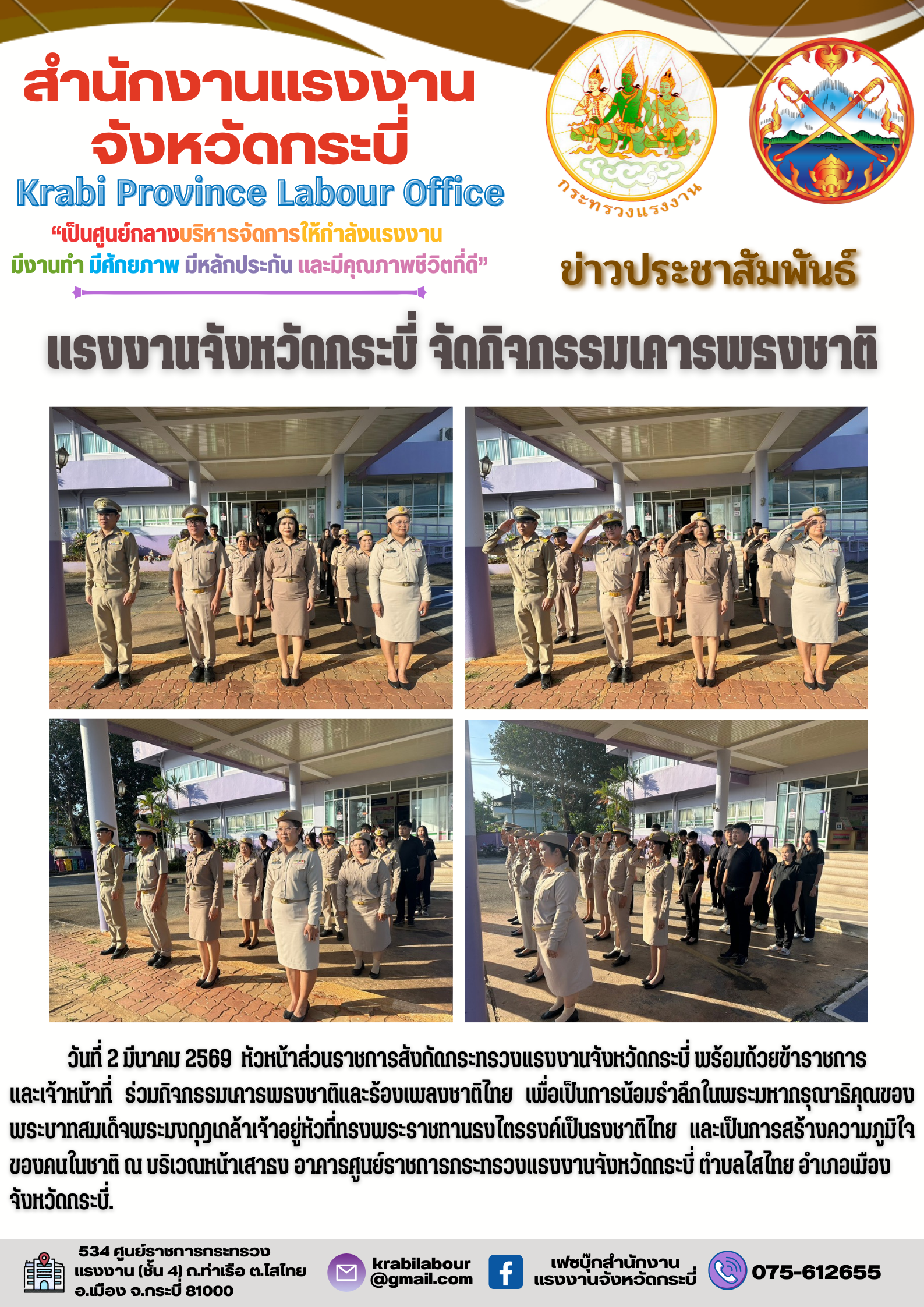 แรงงานจังหวัดกระบี่ จัดกิจกรรมเคารพธงชาติ