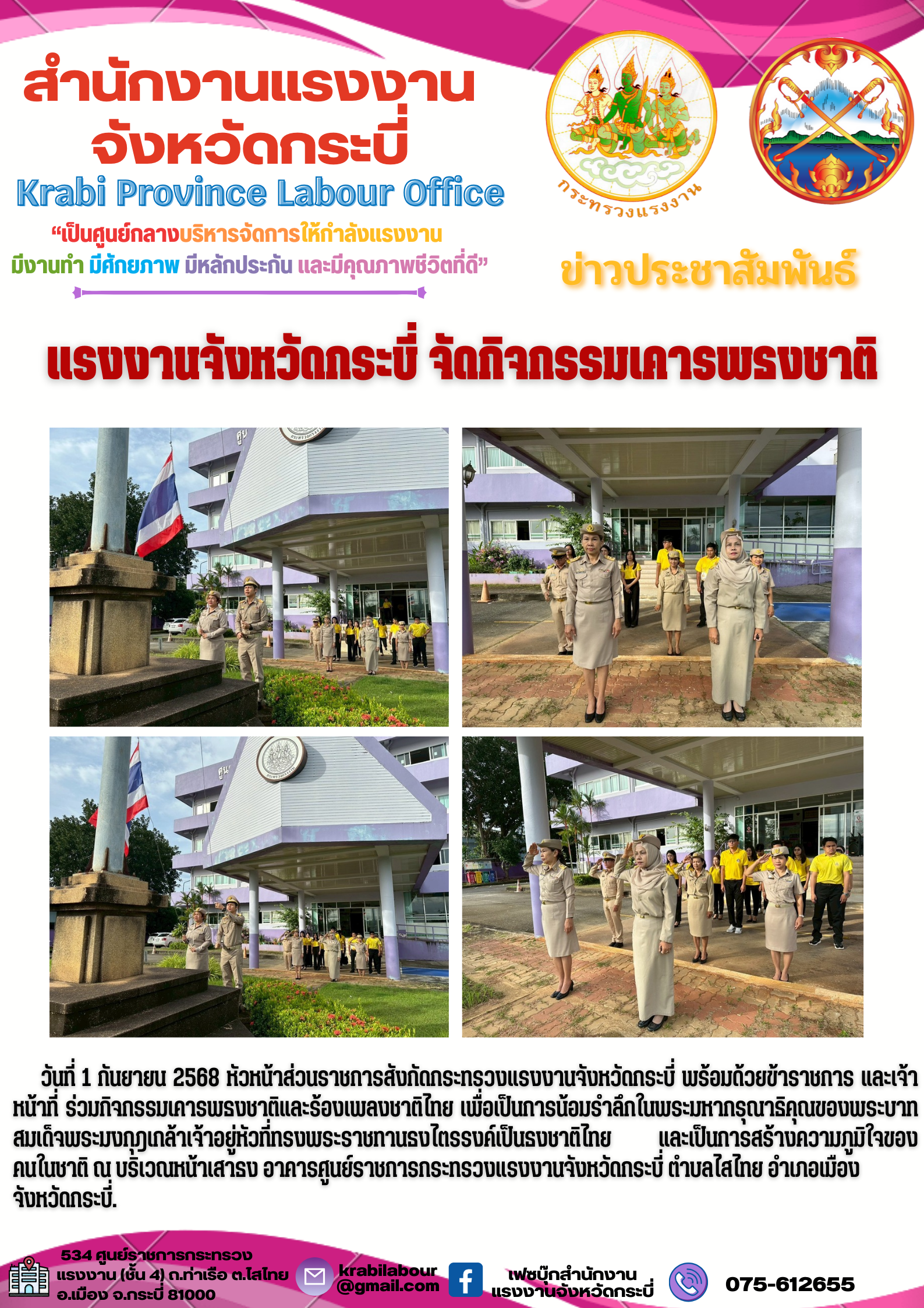 แรงงานจังหวัดกระบี่ จัดกิจกรรมเคารพธงชาติ