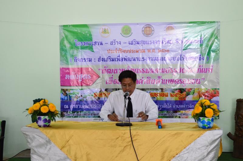 วันนี้ 26 เมษายน 2560 เวลา 09.00 น. พันจ่าเอกไพฑูรย์ น่วมสวัสดิ์ แรงงานจังหวัดกระบี่ เป็นประธานเปิดโครงการสาน – สร้าง – เสริมสุขแรงงานไทย จังหวัดกระบี่ ประจำปีงบประมาณ พ.ศ. 2560 ( กิจกรรม : ส่งเสริมเพื่อพัฒนาแรงงานนอกระบบให้เข้มแข็ง ) หลักสูตร “พัฒนานวัตกรรมและแปรรูปผลิตภัณฑ์เพื่อเพิ่มมูลค่าสินค้าเกษตรชุมชน” ระหว่างวันที่ 26 – 28 เมษายน 2560 โดยความร่วมมือของหน่วยงานสังกัดกระทรวงแรงงานจังหวัดกระบี่ สภาเกษตรกรจังหวัดกระบี่ วิทยาลัยเทคนิคกระบี่ และวิทยาลัยเกษตรและเทคโนโลยีกระบี่ ณ ศาลาเอนกประสงค์หมู่ที่ ๖ บ้านคลองสุข ตำบลอ่าวลึกใต้ อำเภออ่าวลึก จังหวัดกระบี่