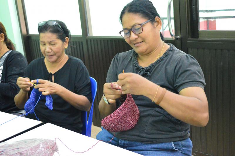 เมื่อวันที่ 11 กรกฎาคม 2560 พันจ่าเอกไพฑูรย์ น่วมสวัสดิ์ แรงงานจังหวัดกระบี่ มอบหมายให้นางสาวฐาปนี พระธาตุ นักวิชาการแรงงานชำนาญการ และนางสาวอนงค์ สังข์ชุม นักวิชาการแรงงานปฏิบัติการ ลงพื้นที่ตรวจเยี่ยมผู้เข้ารับการฝึกอบรมพัฒนาทักษะฝีมือ หลักสูตร การถักกระเป๋าด้วยเชือกร่ม ภายใต้โครงการแก้ไขปัญหาความเดือดร้อนด้านอาชีพ ประจำปีงบประมาณ พ.ศ. 2560 จังหวัดกระบี่ ในพื้นที่ ต.เขาดิน อ.เขาพนม จังหวัดกระบี่