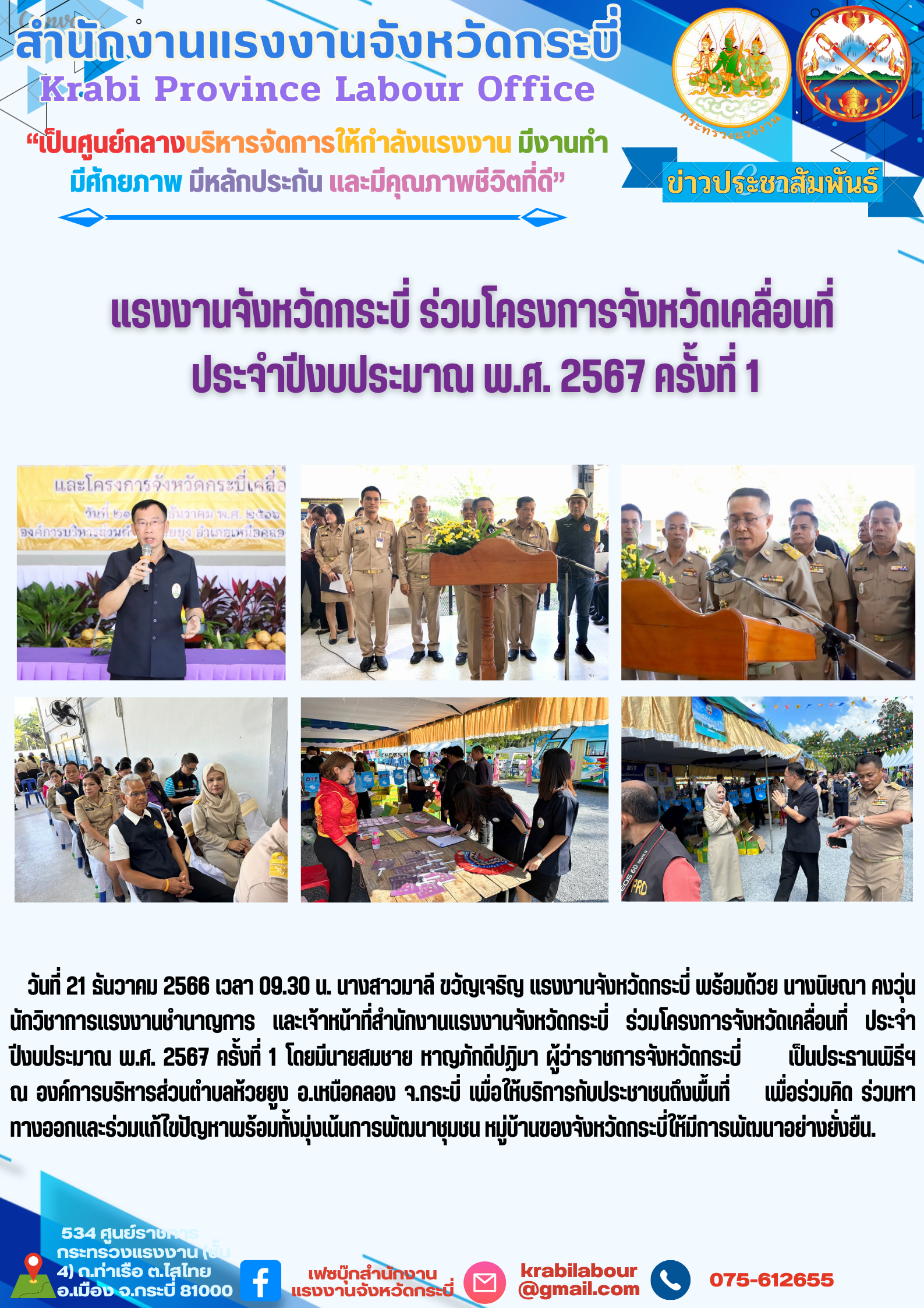 สรจ.กระบี่ ร่วมโครงการจังหวัดเคลื่อนที่ ประจำปีงบประมาณ พ.ศ. 2567 ครั้งที่ 1