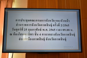 วันศุกร์ที่ 25 กุมภาพันธ์ พ.ศ. 2565 เวลา 09.00 น. นางพนิดา เสถียรจิตร แรงงานจังหวัดกาฬสินธุ์ ร่วมการประชุมคณะกรมการจังหวัดและหัวหน้าส่วนราชการจังหวัดกาฬสินธุ์ ครั้งที่ 2/2565 โดยมีนายทรงพล ใจกริ่ม ผู้ว่าราชการจังหวัดกาฬสินธุ์ เป็นประธานการประชุม ณ ห้องโสมพะมิตร ชั้น 4 ศาลากลางจังหวัดกาฬสินธุ์ อำเภอเมือง จังหวัดกาฬสินธุ์