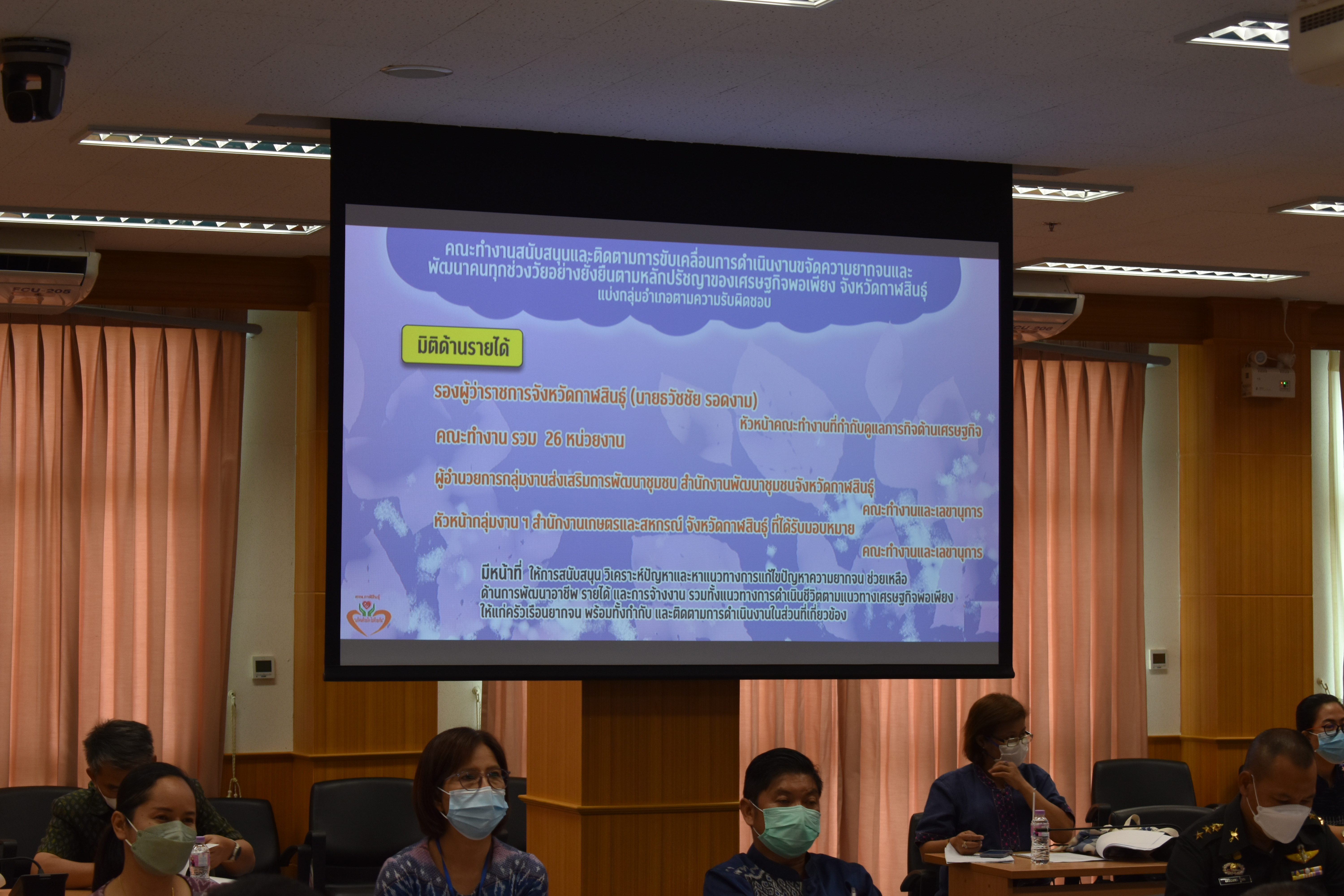 วันพฤหัสบดีที่ 26 พฤษภาคม พ.ศ. 2565 เวลา 13.30 น. นางพนิดา เสถียรจิตร แรงงานจังหวัดกาฬสินธุ์ พร้อมด้วยหัวหน้าส่วนราชการ ร่วมการประชุมศูนย์อำนวยการขจัดความยากจนและพัฒนาคนทุกช่วงวัยอย่างยั่งยืน ตามหลักปรัชญาของเศรษฐกิจพอเพียงจังหวัด (ศจพ.จ.) กาฬสินธุ์ ครั้งที่ 2 /2565 โดยมีนายศุภศิษย์ กอเจริญยศ รองผู้ว่าราชการจังหวัดกาฬสินธุ์ เป็นประธานการประชุม ณ ห้องประชุมฟ้าแดดสงยาง ชั้น 2 ศาลากลางจังหวัดกาฬสินธุ์