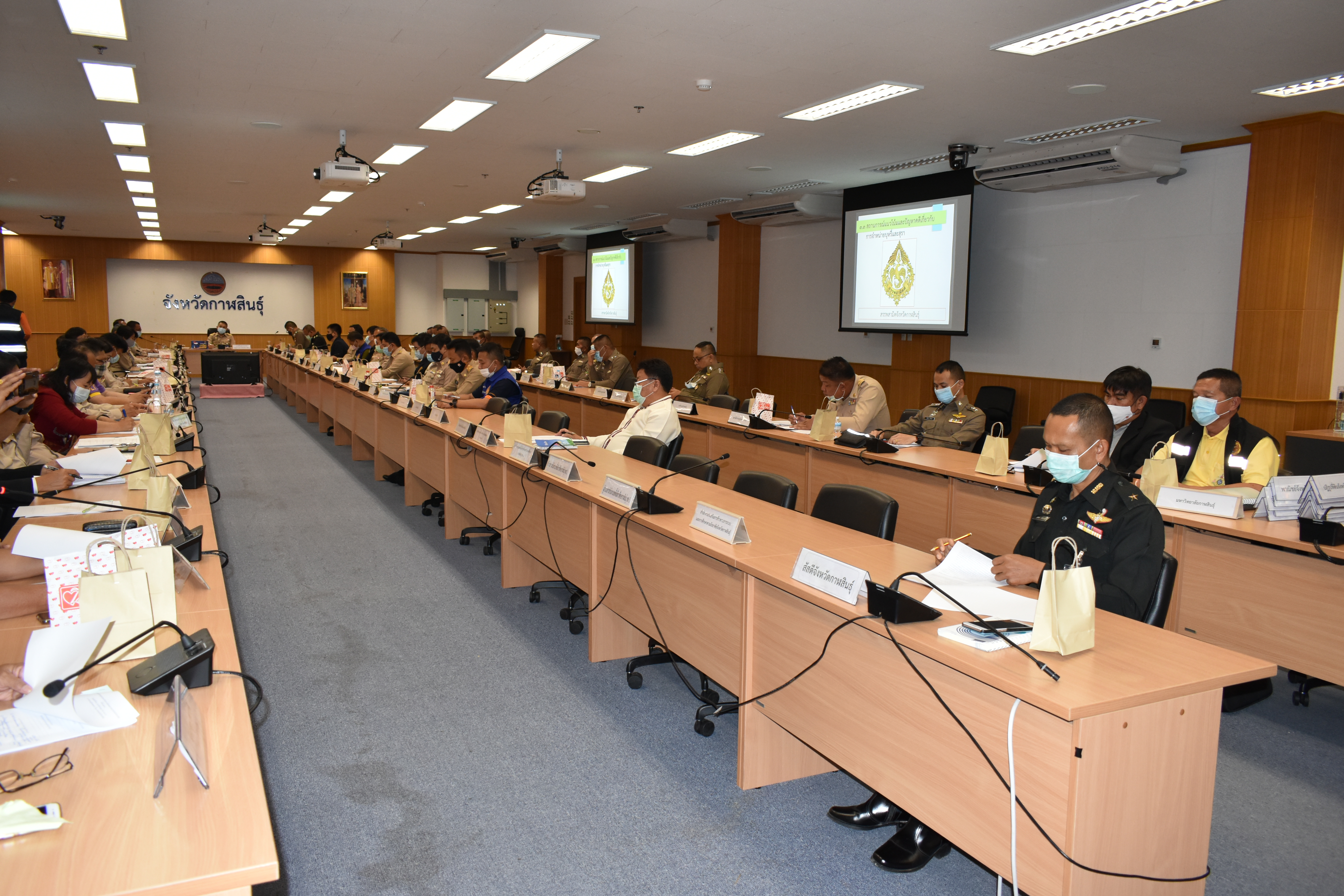 วันพฤหัสบดี ที่ 25 กุมภาพันธ์ 2564 เวลา 13.00 น. นางรตี วัลลิสุต แรงงานจังหวัดกาฬสินธุ์ ร่วมประชุมคณะกรรมการรักษาความมั่นคงและความสงบเรียบร้อยจังหวัดกาฬสินธุ์ ครั้งที่ 2/2564 และประชุมคณะกรรมการศูนย์อำนวยการป้องกันและปราบปรามยาเสพติดจังหวัดกาฬสินธุ์ ครั้งที่ 2/2564 ณ ห้องประชุมฟ้าแดดสงยาง ศาลากลางจังหวัดกาฬสินธุ์ ชั้น 2 อำเภอเมือง จังหวัดกาฬสินธุ์ โดยมีนายเลิศบุศย์ กองทอง รองผู้ว่าราชการจังหวัดกาฬสินธุ์ เป็นประธานการประชุม