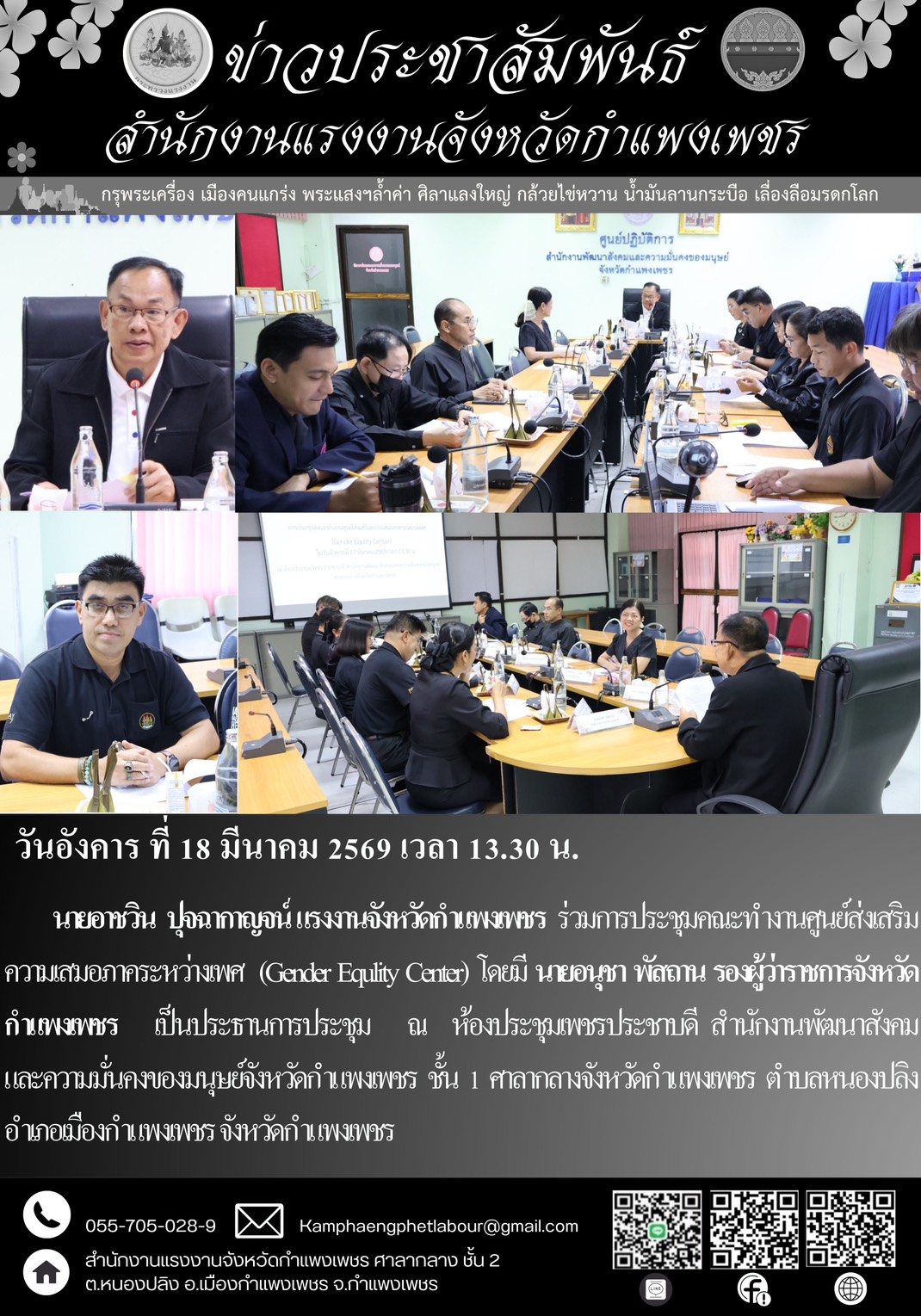 แรงงานจังหวัดกำแพงเพชร ร่วมการประชุมคณะทำงานศูนย์ส่งเสริมความเสมอภาคระหว่างเพศ