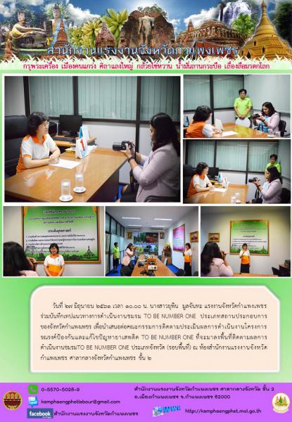 แรงงานจังหวัดกำแพงเพชร ร่วมบันทึกเทปแนวทางการดำเนินงานชมรม TO BE NUMBER ONE ประเภทสถานประกอบการของจังหวัดกำแพงเพชร