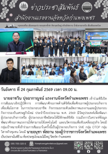 แรงงานจังหวัดกำแพงเพชร ร่วมพิธีเปิดการสัมมนาเชิงปฏิบัติการ การพัฒนาศักยภาพด้านดิจิทัลเพื่อศักยภาพผู้ประกอบกิจการเพื่อเพิ่มโอกาส ในการประกอบอาชีพ กิจกรรมยกระดับผลิตภาพแรงงานและผู้ประกอบกิจการรองรับเศรษฐกิจใหม่ ประจำปีงบประมาณ พ.ศ. 2569