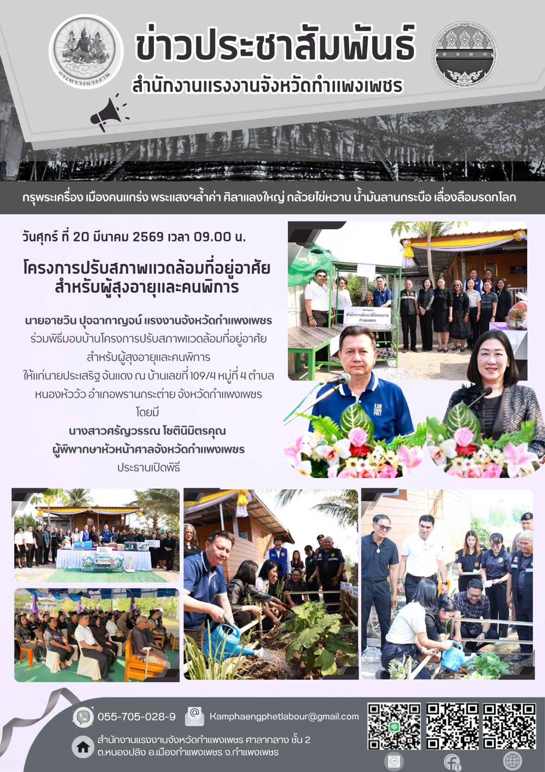 แรงงานจังหวัดกำแพงเพชร ร่วมโครงการปรับสภาพแวดล้อมที่อยู่อาศัยสำหรับผู้สุงอายุและคนพิการ
