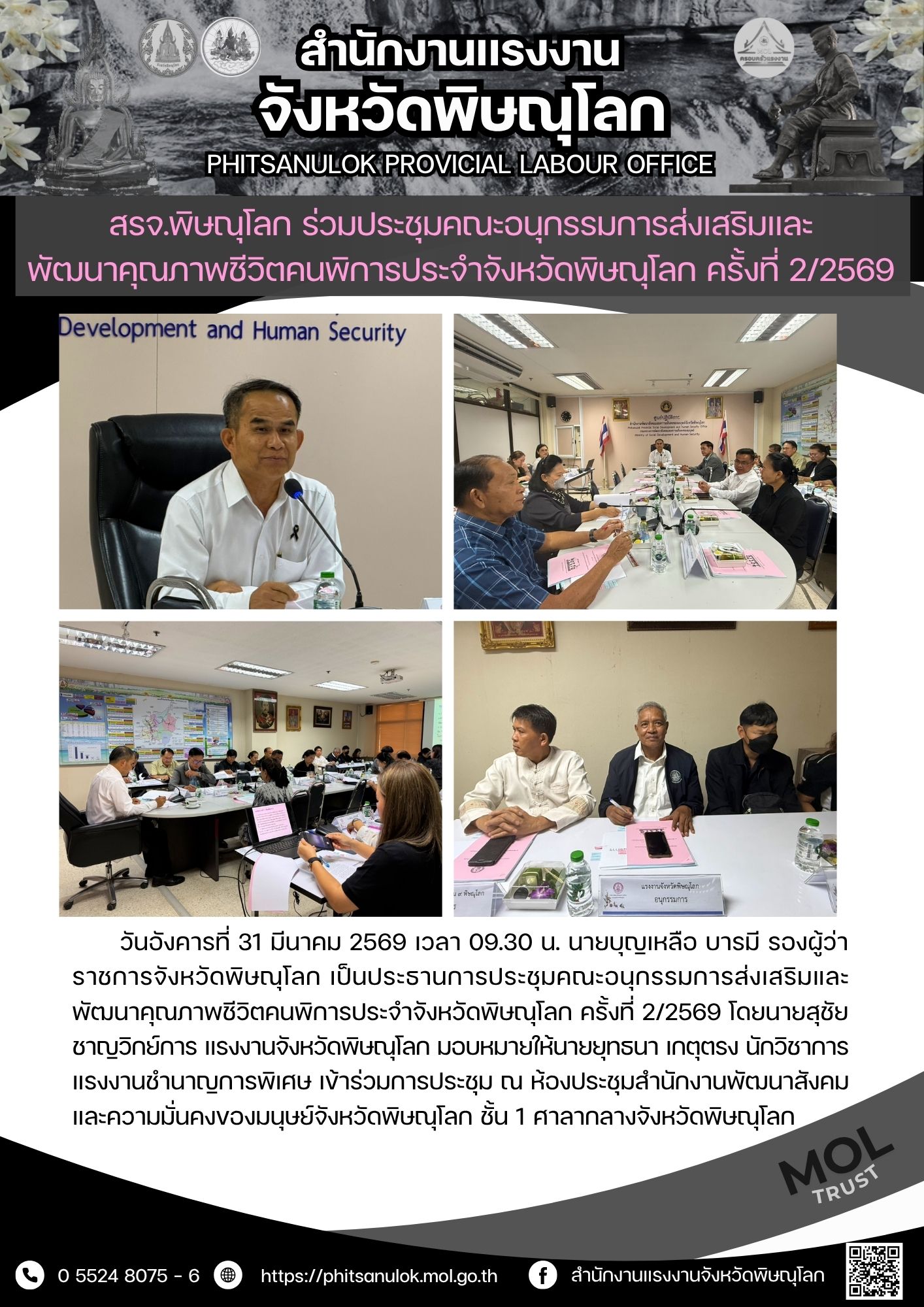 สรจ.พิษณุโลก ร่วมประชุมคณะอนุกรรมการส่งเสริมและพัฒนาคุณภาพชีวิตคนพิการประจำจังหวัดพิษณุโลก ครั้งที่ 2/2569