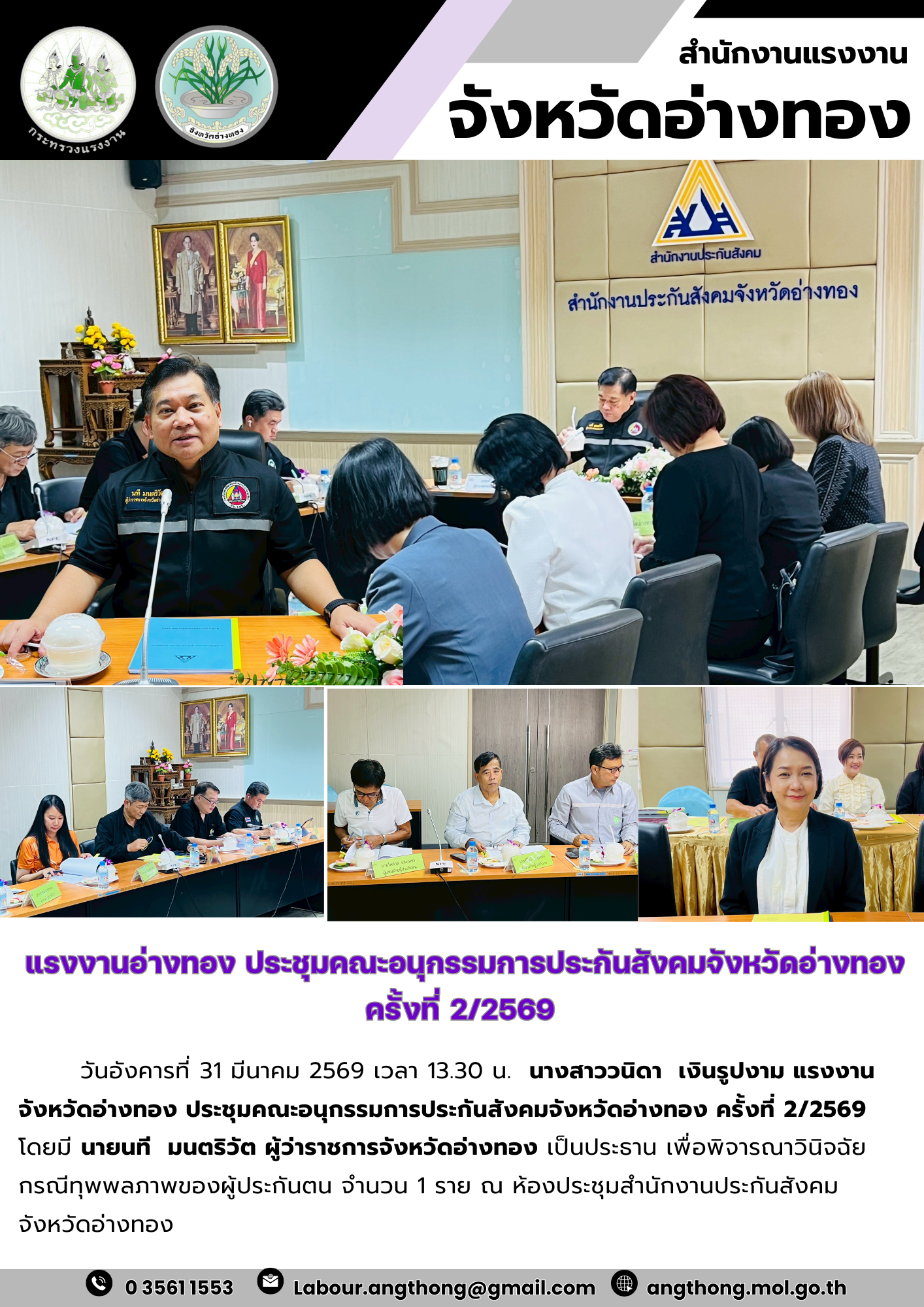 แรงงานอ่างทอง ประชุมคณะอนุกรรมการประกันสังคมจังหวัดอ่างทอง ครั้งที่ 2/2569