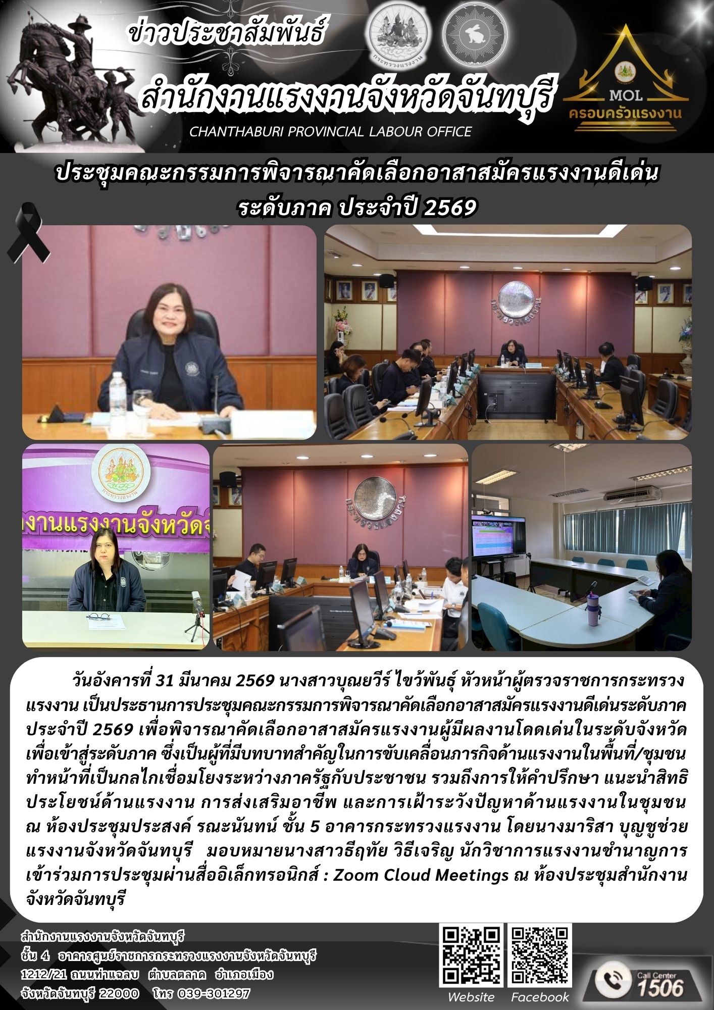 สรจ.จบ. ร่วมการประชุมคณะกรรมการพิจารณาคัดเลือกอาสาสมัครแรงงานดีเด่นระดับภาค ประจำปี 2569