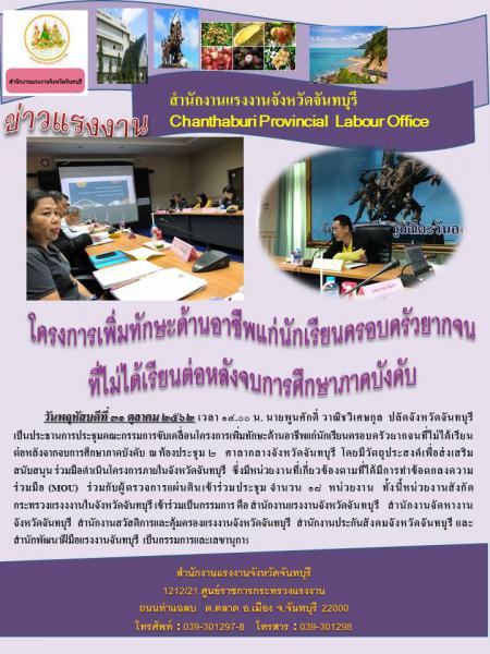 แรงงานจังหวัดจันทบุรีเข้าร่วมประชุมโครงการเพิ่มทักษะด้านอาชีพแก่นักเรียนครอบครัวยากจนที่ไม่ได้เรียนต่อหลังจบการศึกษาภาคบังคับ