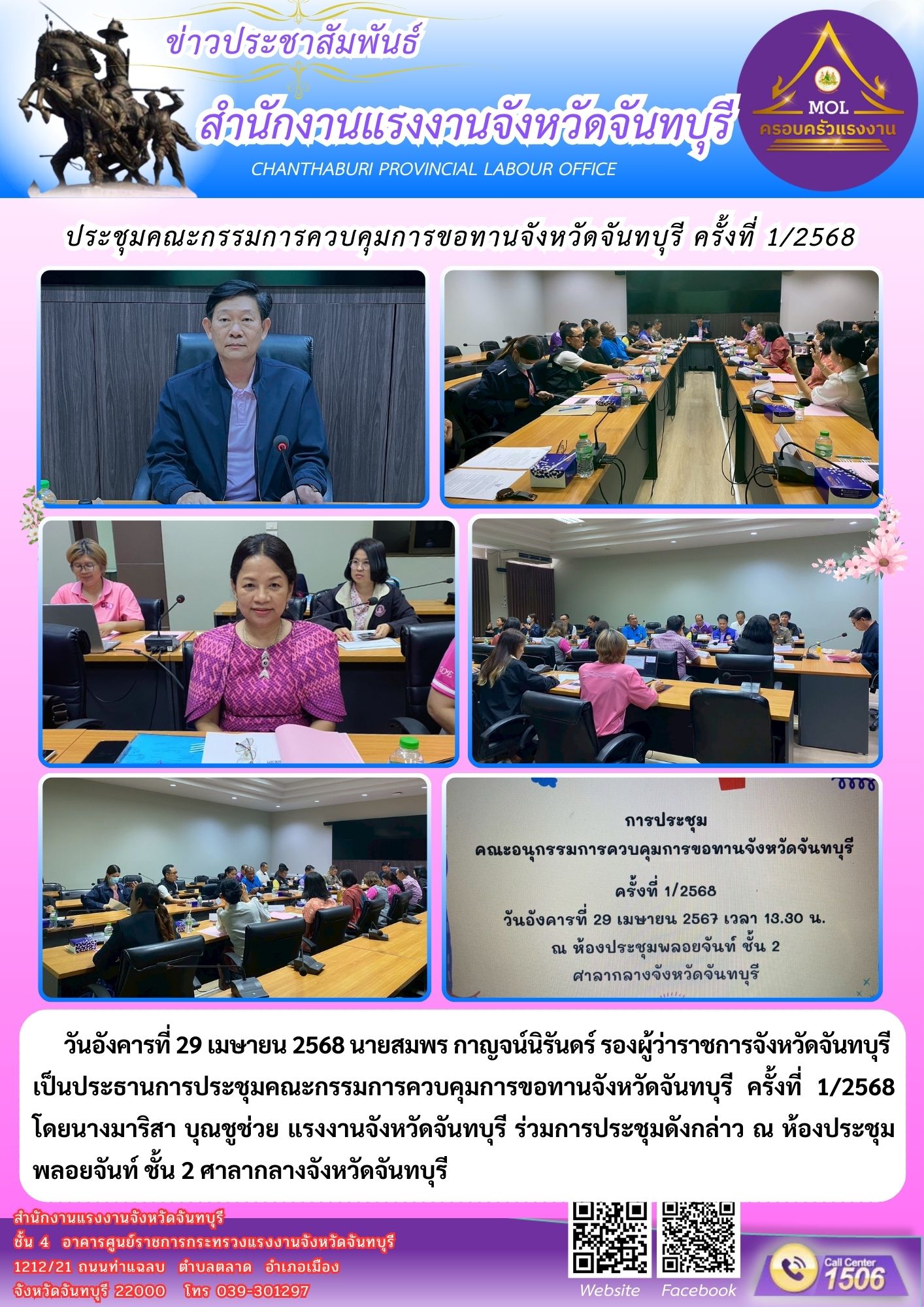 แรงงานจังหวัดจันทบุรี ร่วมการประชุมคณะกรรมการควบคุมการขอทานจังหวัดจันทบุรี ครั้งที่ 1/2568
