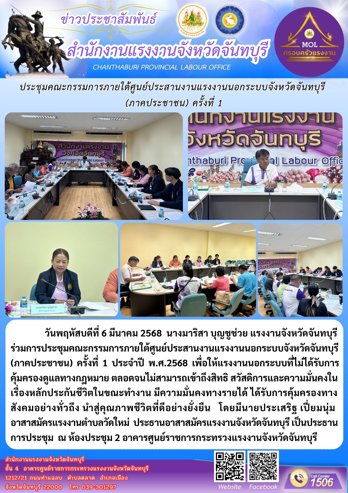 แรงงานจังหวัดจันทบุรี ร่วมการประชุมคณะกรรมการภายใต้ศูนย์ประสานงานแรงงานนอกระบบจังหวัดจันทบุรี (ภาคประชาชน) ครั้งที่ 1