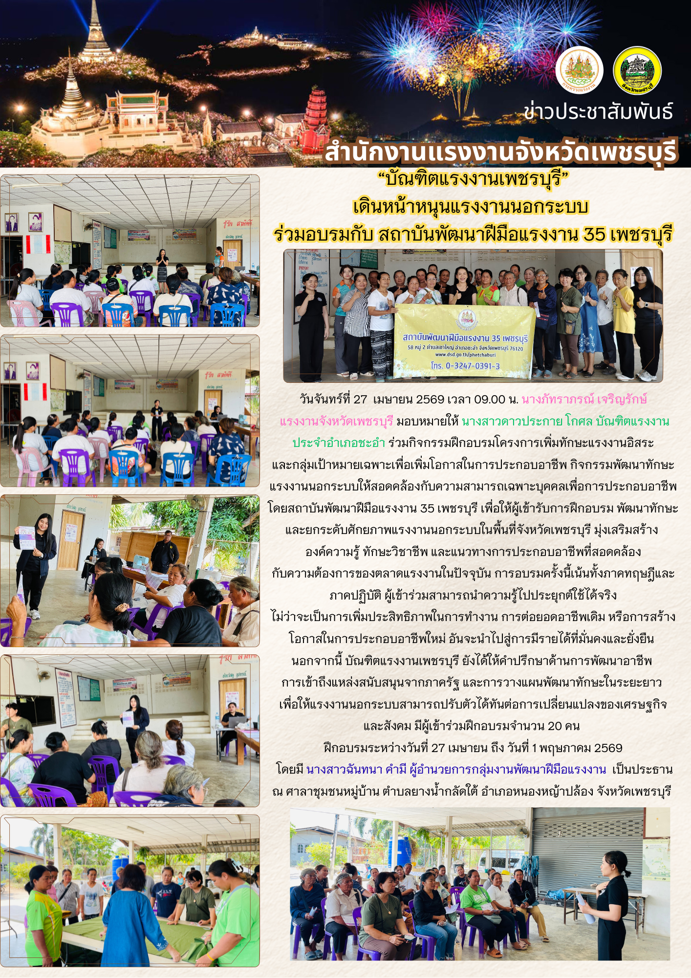 “บัณฑิตแรงงานเพชรบุรี” เดินหน้าหนุนแรงงานนอกระบบ ร่วมอบรมกับ สถาบันพัฒนาฝีมือแรงงาน 35 เพชรบุรี