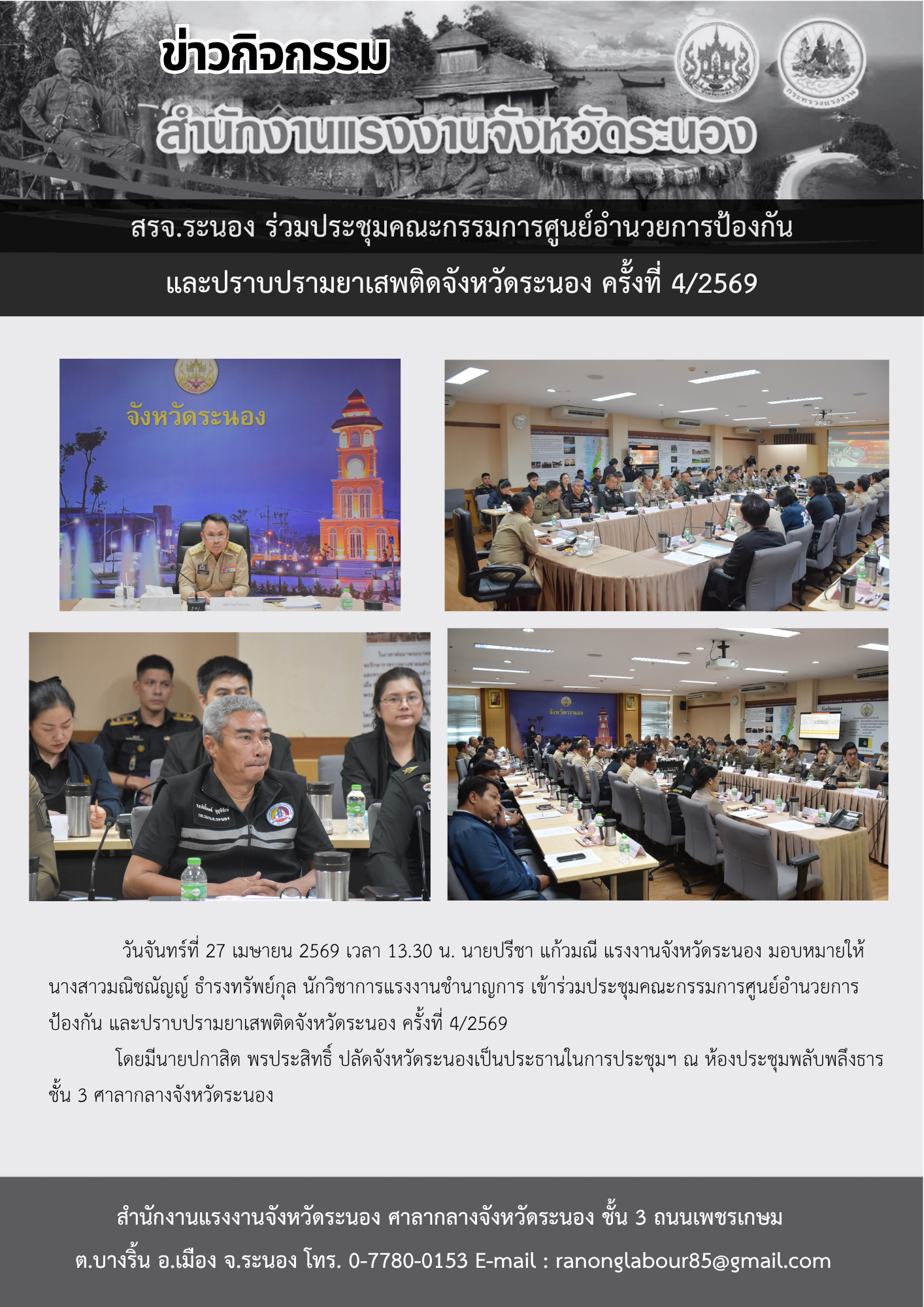 สรจ.ระนอง ร่วมประชุมคณะกรรมการศูนย์อำนวยการป้องกันและปราบปรามยาเสพติดจังหวัดระนอง ครั้งที่ 4/2569