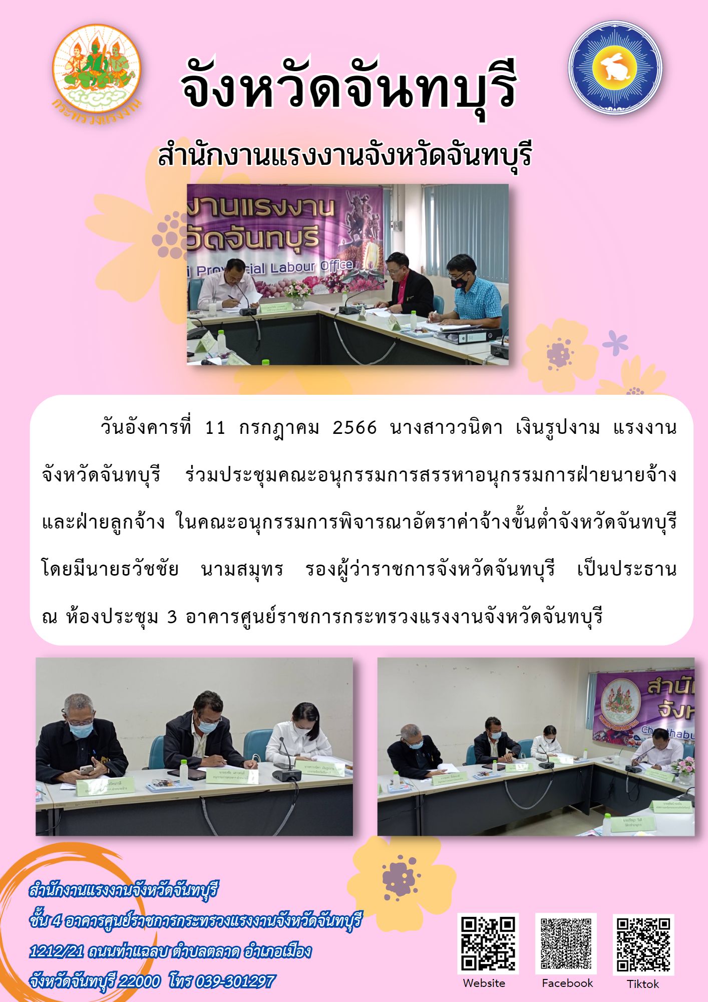 สรจ.จันทบุรี ร่วมประชุมคณะอนุกรรมการสรรหาอนุกรรมการฝ่ายนายจ้างและฝ่ายลูกจ้าง ในคณะอนุกรรมการพิจารณาอัตราค่าจ้างขั้นต่ำจังหวัดจันทบุรี