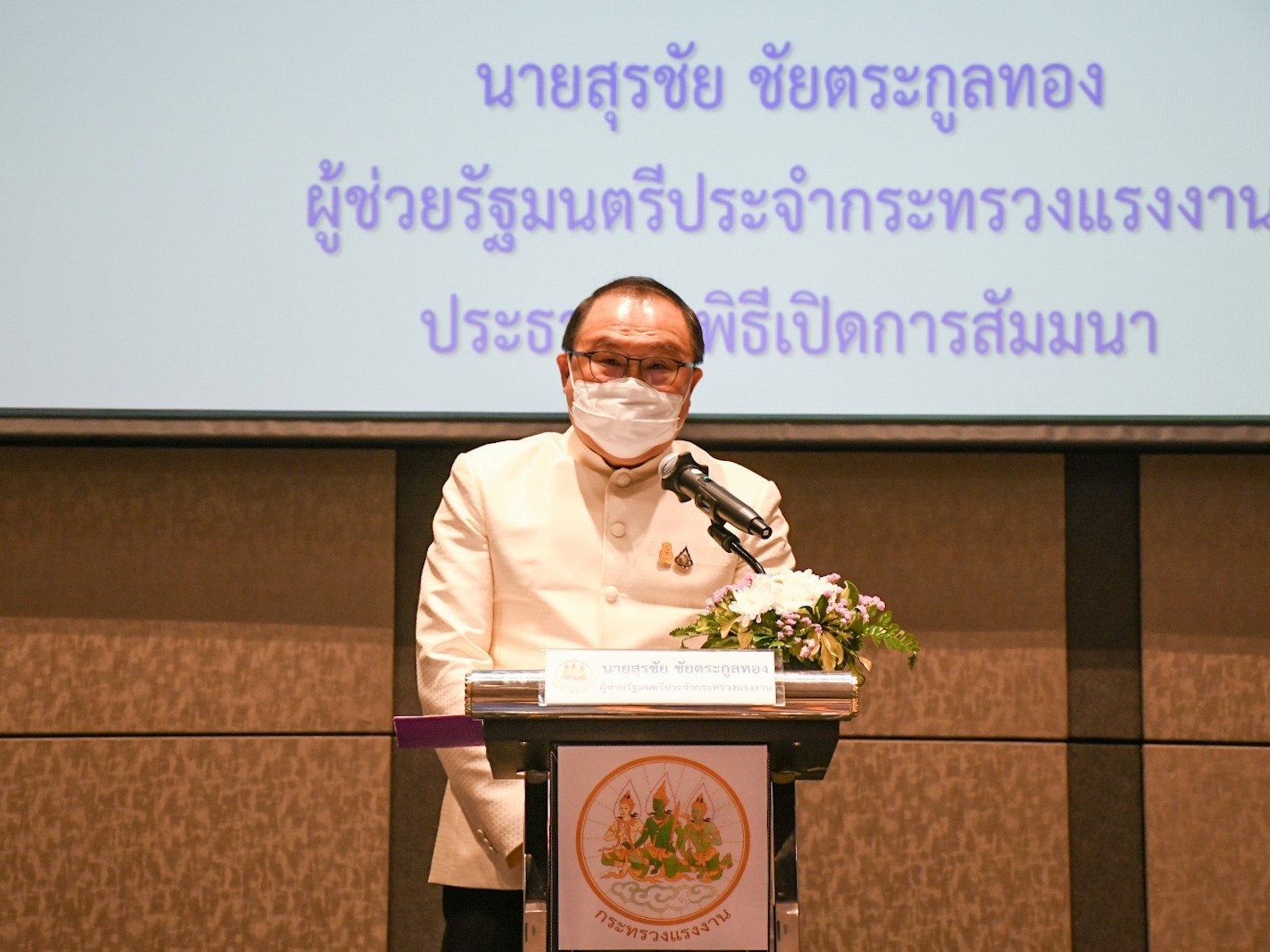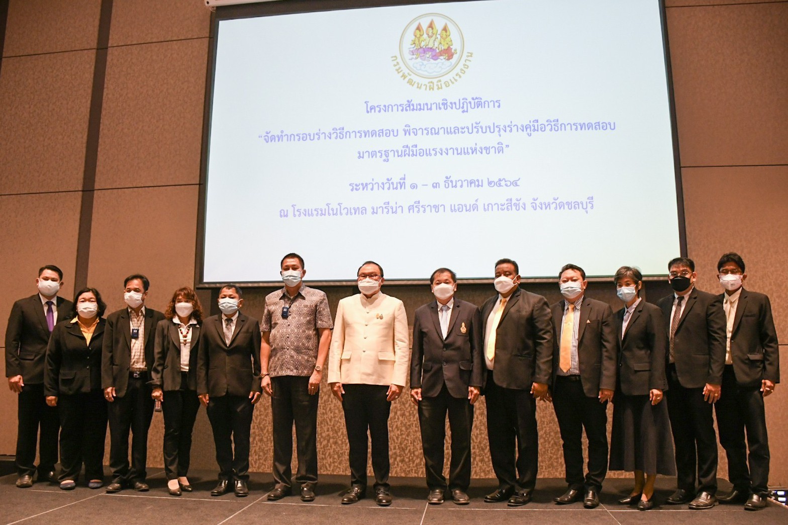 วันพุธที่ 1 ธันวาคม 2564 เวลา 09.30น. นายสุรชัย ชัยตระกูลทอง ผู้ช่วยรัฐมนตรีประจำกระทรวงแรงงาน เป็นประธานพิธีเปิดการสัมมนาเชิงปฏิบัติการ “จัดทำกรอบร่างวิธีการทดสอบ พิจารณาและปรับปรุงร่างคู่มือวิธีการทดสอบมาตรฐานฝีมือแรงงานแห่งชาติ” ณ ห้องประชุมมารีน่า แกรนด์ บอลรูม โรงแรมโนโวเทลมารีน่า ศรีราชา แอนด์ เกาะสีชัง จังหวัดชลบุรี โดยมี นายธวัชชัย ศรีทอง รองผู้ว่าราชการจังหวัดชลบุรี นางสาวกรจิรัฏฐ์ พงจันทร์ศธร แรงงานจังหวัดชลบุรี พร้อมด้วยหัวหน้าส่วนราชการในสังกัดกระทรวงแรงงานจังหวัดชลบุรี ร่วมเป็นเกียรติในพิธีเปิดการสัมมนาฯ ดังกล่าว