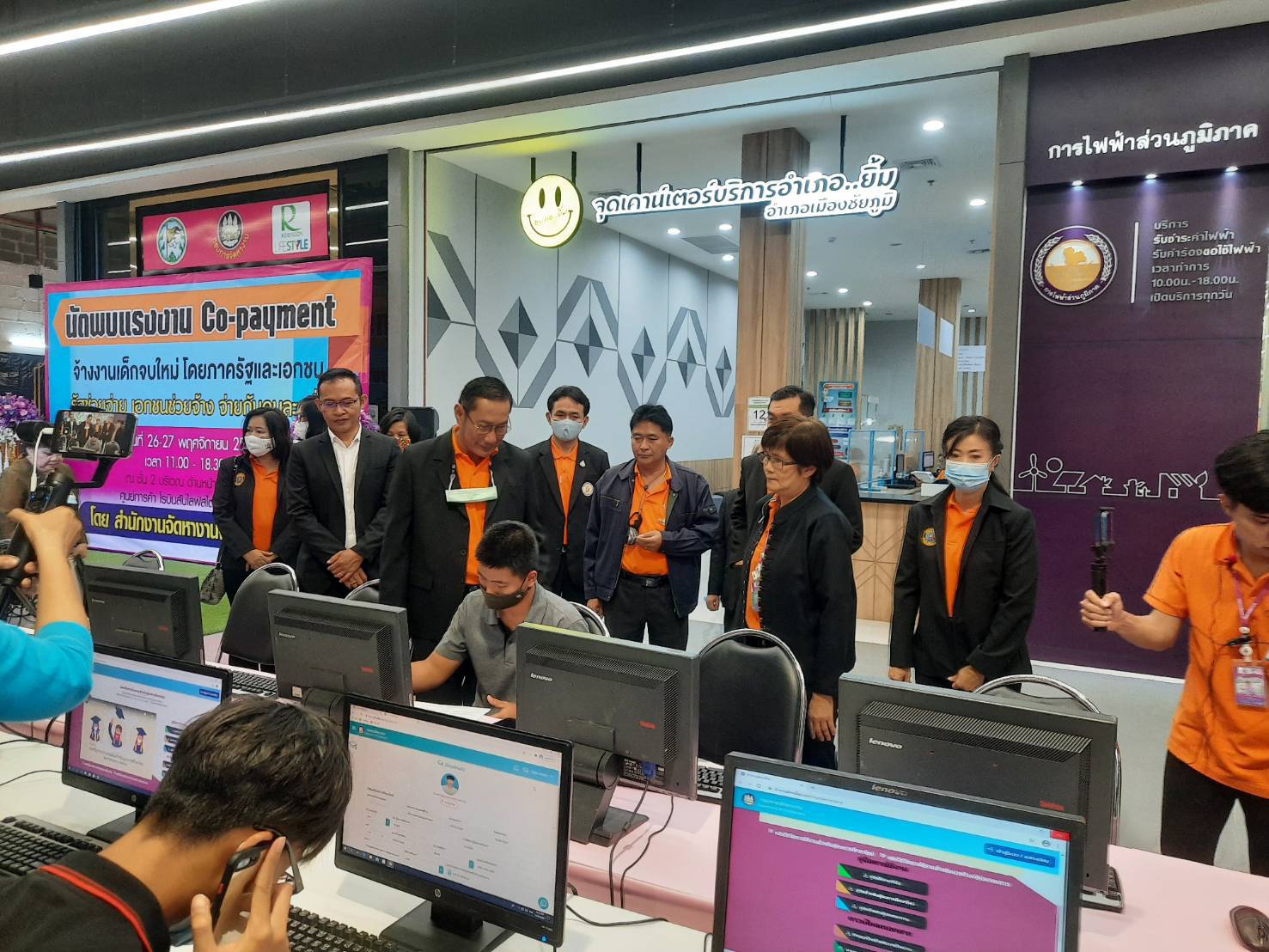 วันพฤหัสบดีที่ 26 พฤศจิกายน 2563 เวลา 11.30 น. นายอำนาจ เชิงไว แรงงานจังหวัดชัยภูมิ ร่วมพิธีเปิดงานวันนัดพบแรงงาน Co-payment ณ ด้านหน้าศูนย์อาหาร ศูนย์การค้าโรบินสัน ไลฟ์สไตล์ สาขาชัยภูมิ ตำบลในเมือง อำเภอเมือง จังหวัดชัยภูมิ โดยมีนายประทีป ศิลปเทศ รองผู้ว่าราชการจังหวัดชัยภูมิ เป็นประธานเปิดงาน