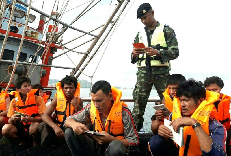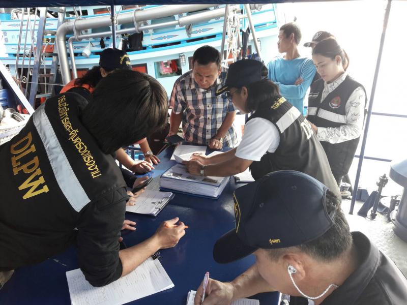 วันที่ 8 มกราคม 2561 เวลา 07.00 น. นางสาวกานต์กมล ชุมภูทอง แรงงานจังหวัดชุมพร ร่วมตรวจบูรณาการกับคณะทำงานบูรณาการความร่วมมือ ในการตรวจคุ้มครองแรงงานและการค้ามนุษย์ด้านแรงงาน ในกิจการประมงทะเลและกิจการที่เกี่ยวเนื่องบริเวณอ่าวไทยจังหวัดชุมพร ผลการตรวจเรือประมง จำนวน 12 ลำ แรงงานจำนวน ๒๕๕ คน จำแนกเป็นสัญชาติไทย จำนวน 31 คน สัญชาติเมียนมา จำนวน 224 คน
