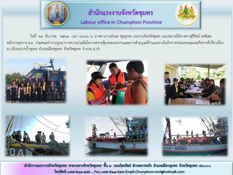 แรงงานจังหวัดชุมพรร่วมกับคณะทำงานบูรณาการความร่วมมือการตรวจคุ้มครองและการค้ามนุษย์ด้านแรงงานในกิจการประมงทะเลและกิจการที่เกี่ยวเนื่อง