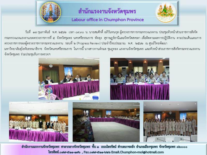 แรงงานจังหวัดชุมพร ร่วมประชุมรับการตรวจติดตามผลการปฎิบัติงานตามประเด็นแผนการตรวจราชการของผู้ตรวจราชการกระทรวงแรงงาน