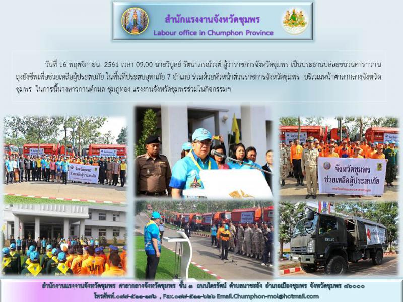 แรงงานจังหวัดชุมพร "ร่วมปล่อยขบวนคาราวานถุงยังชีพช่วยเหลือผู้ประสบภัย"