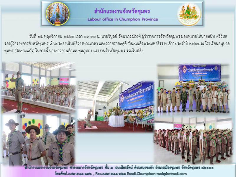 แรงงานจังหวัดชุมพร ร่วมพิธี "วันสมเด็จพระมหาธีรราชเจ้า" ประจำปี 2561