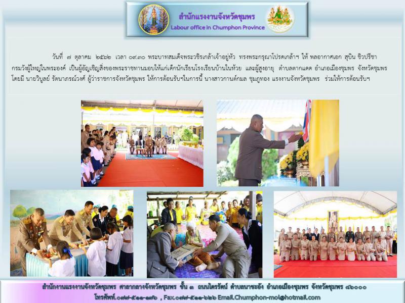 แรงงานจังหวัดชุมพร ร่วมให้การต้อนรับฯมอบสิ่งของพระราชทานให้แก่นักเรียนโรงเรียนบ้านในห้วย