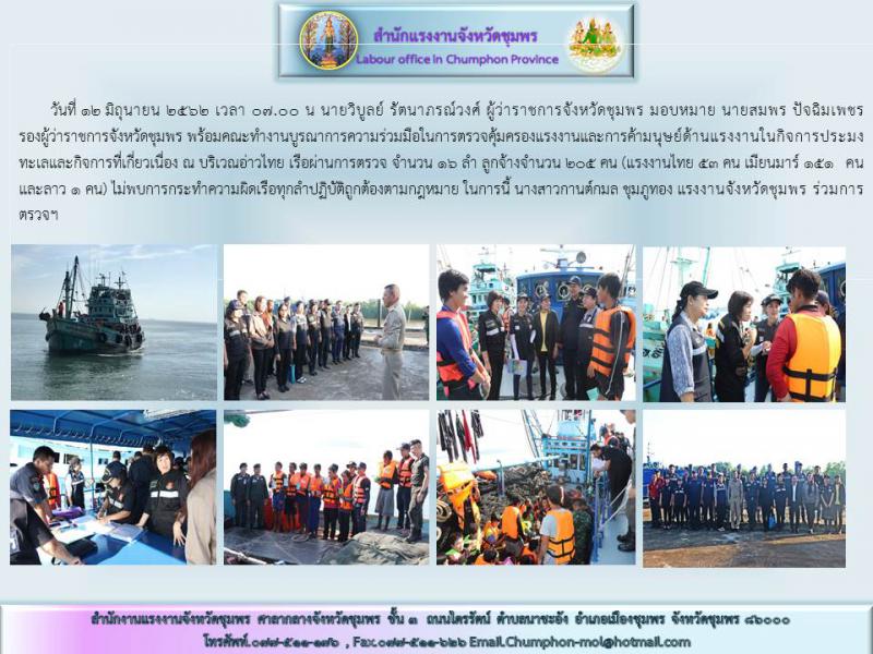 แรงงานจังหวัดชุมพร ร่วมคณะทำงานบูรณาการตรวจคุ้มครองและการค้ามนุษย์ด้านแรงงานในกิจการประมงทะเลและที่เกี่ยวเนื่องฯ