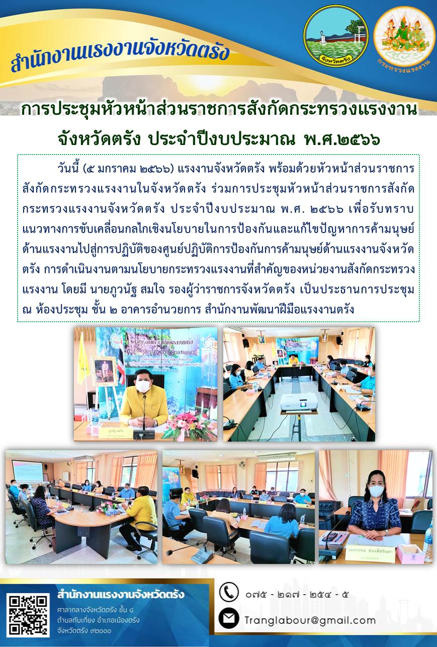 แรงงานจังหวัดตรัง พร้อมด้วยหัวหน้าส่วนราชการสังกัดกระทรวงแรงงานในจังหวัดตรัง ร่วมการประชุมหัวหน้าส่วนราชการสังกัดกระทรวงแรงงานจังหวัดตรัง ครั้งที่ 3/2566