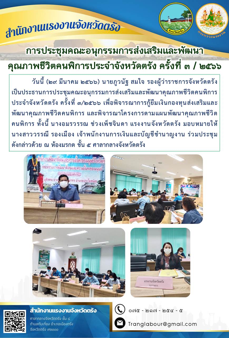 สรจ.ตรัง ร่วมการประชุมคณะอนุกรรมการส่งเสริมและพัฒนาคุณภาพชีวิตคนพิการประจำจังหวัดตรัง ครั้งที่ 3/2566