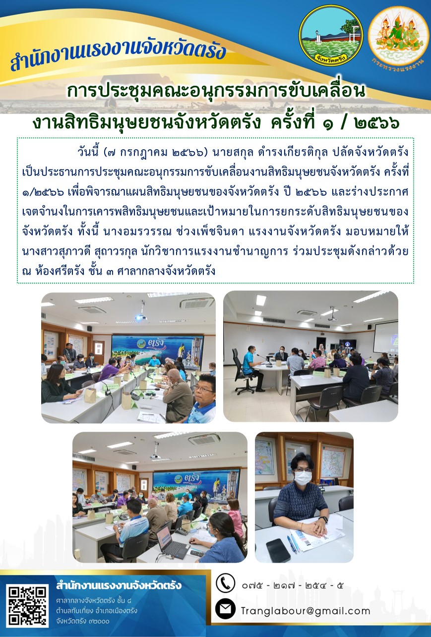 สรจ.ตรัง ร่วมการประชุมคณะอนุกรรมการขับเคลื่อนงานสิทธิมนุษยชนจังหวัดตรัง ครั้งที่ 1/2566