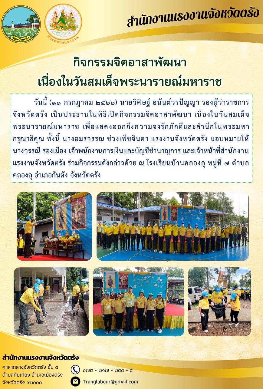 สรจ.ตรัง ร่วมกิจกรรมจิตอาสาพัฒนา เนื่องในวันสมเด็จพระนารายณ์มหาราช