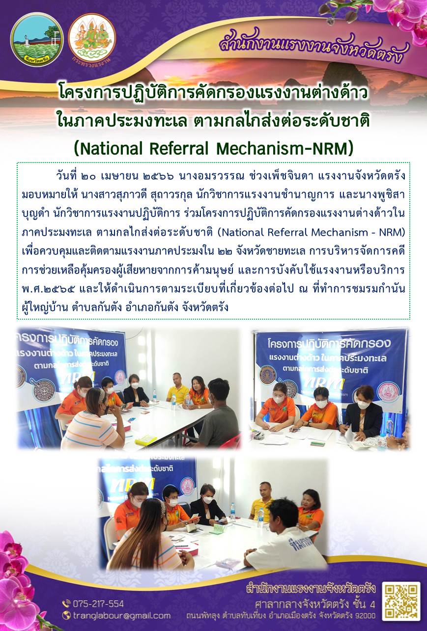 สรจ.ตรัง ร่วมโครงการปฏิบัติการคัดกรองแรงงานต่างด้าวในภาคประมงทะเลตามกลไกส่งต่อระดับชาติ (National Referral Mechanism – NRM)