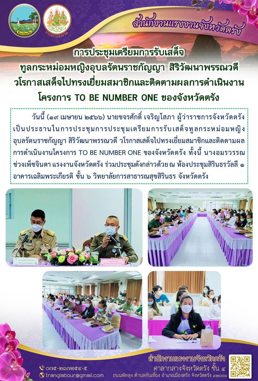 สรจ.ตรัง ร่วมการประชุมการประชุมเตรียมการรับเสด็จทูลกระหม่อมหญิงอุบลรัตนราชกัญญา สิริวัฒนาพรรณวดี วโรกาสเสด็จไปทรงเยี่ยมสมาชิกและติดตามผลการดำเนินงานโครงการ TO BE NUMBER ONE