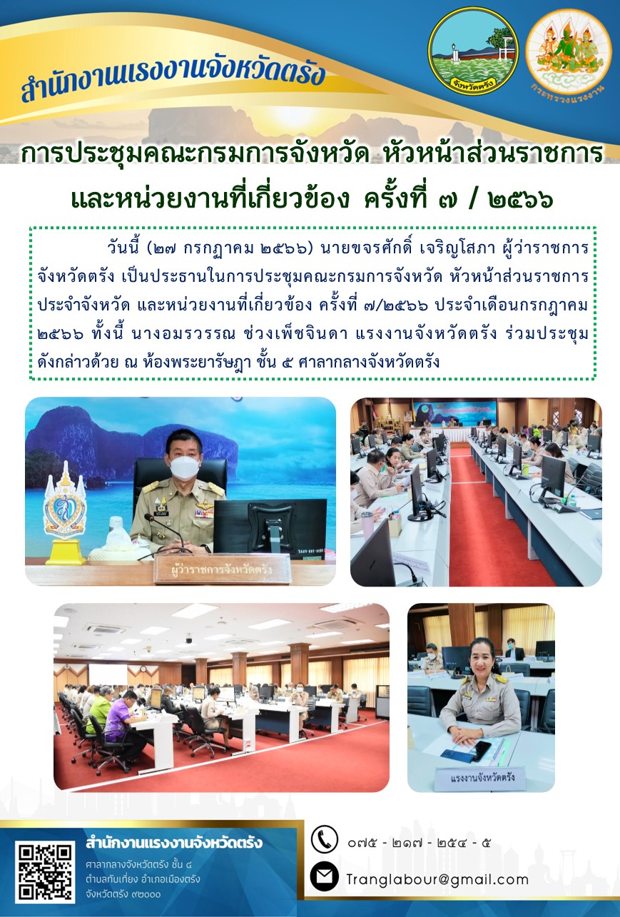 สรจ.ตรัง ร่วมการประชุมคณะกรมการจังหวัด หัวหน้าส่วนราชการประจำจังหวัด และหน่วยงานที่เกี่ยวข้อง ครั้งที่ 7/2566