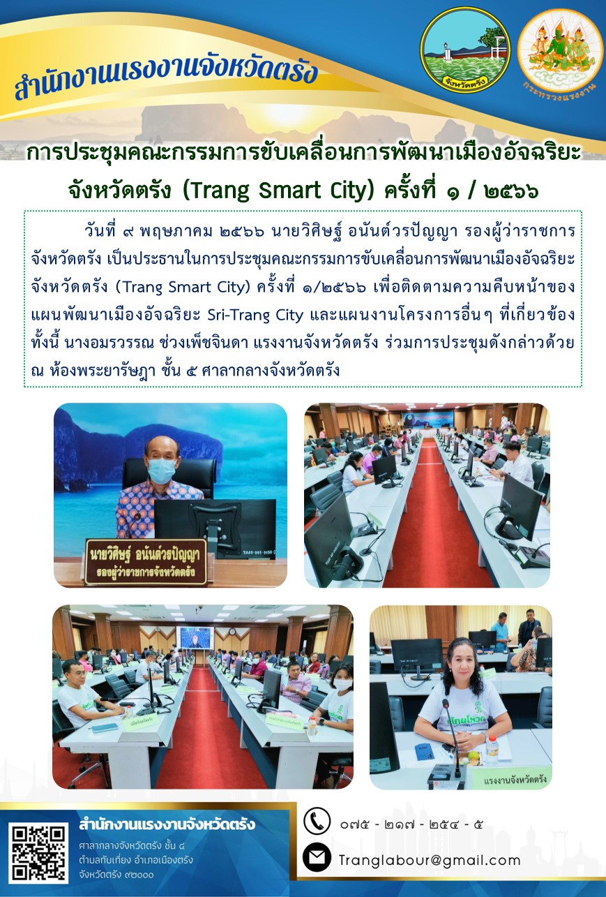 สรจ.ตรัง ร่วมการประชุมคณะกรรมการขับเคลื่อนการพัฒนาเมืองอัจฉริยะจังหวัดตรัง (Trang Smart City) ครั้งที่ 1/2566