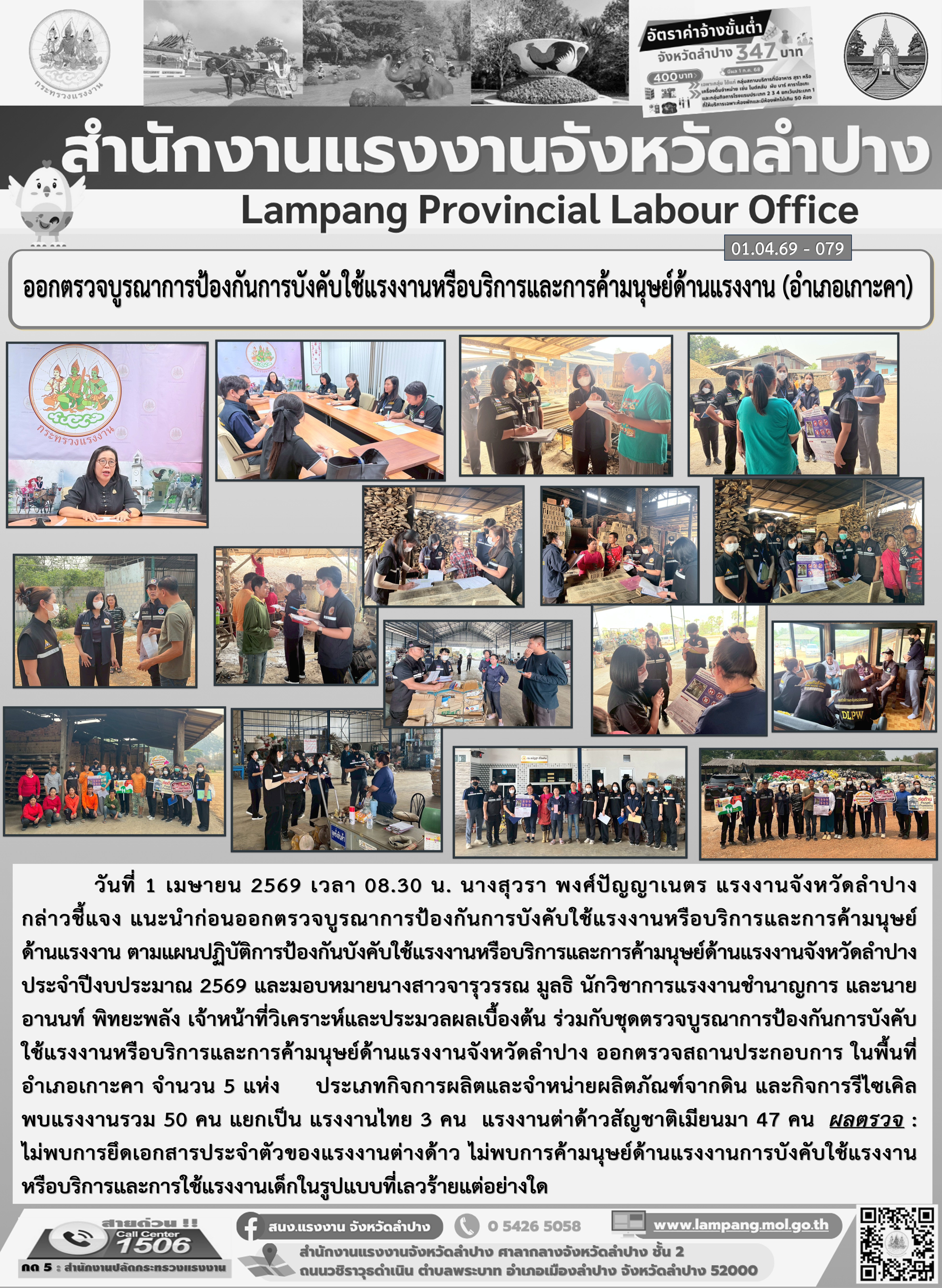 ออกตรวจบูรณาการป้องกันการบังคับใช้แรงงานหรือบริการและการค้ามนุษย์ด้านแรงงาน ในพื้นที่อำเภอเกาะคา