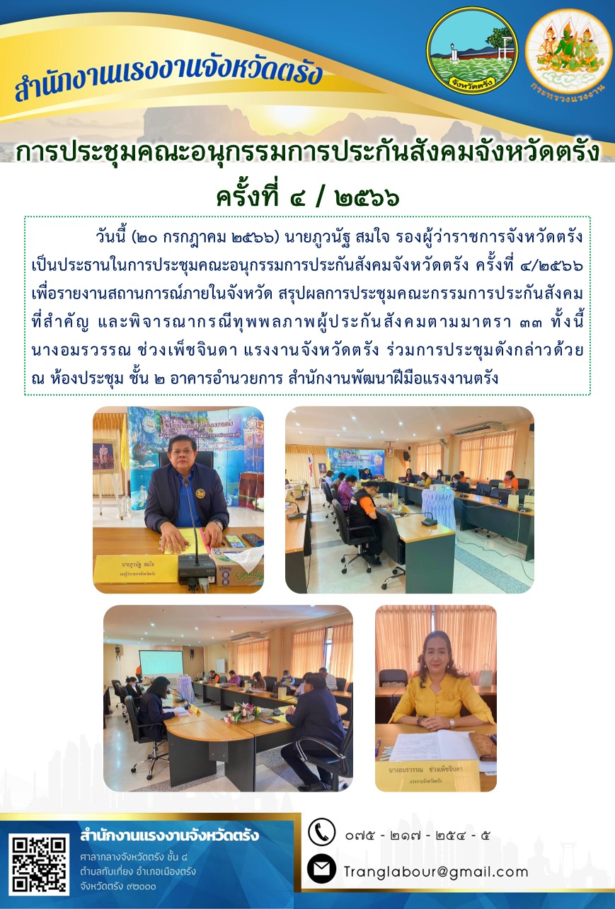 สรจ.ตรัง ร่วมการประชุมคณะอนุกรรมการประกันสังคมจังหวัดตรัง ครั้งที่ 4/2566