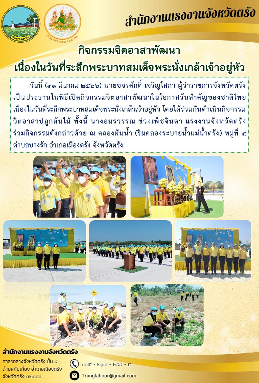 แรงงานจังหวัดตรัง ร่วมกิจกรรมจิตอาสาพัฒนา เนื่องในวันที่ระลึกพระบาทสมเด็จพระนั่งเกล้าเจ้าอยู่หัว