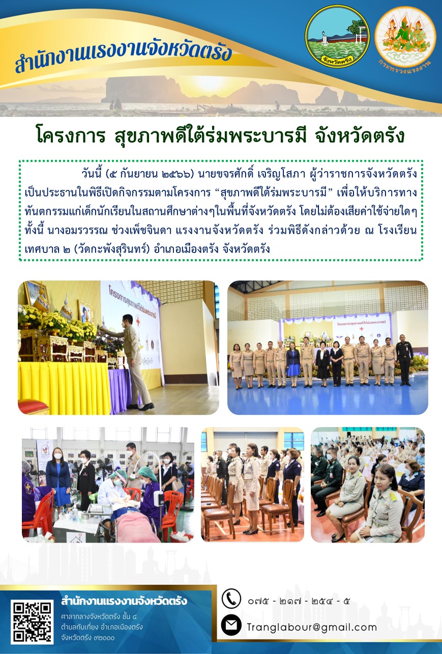 สรจ.ตรัง ร่วมพิธีเปิดกิจกรรมตามโครงการ “สุขภาพดีใต้ร่มพระบารมี” จังหวัดตรัง