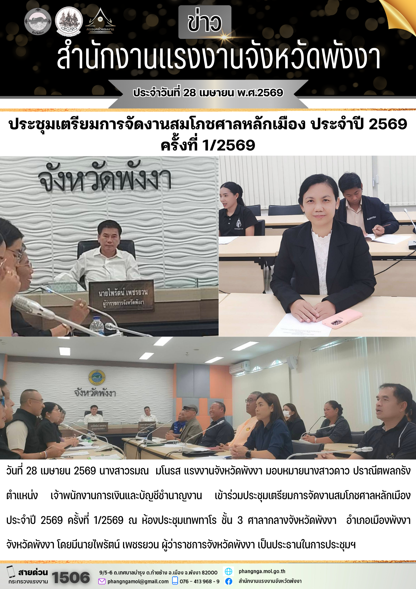 สรจ.พังงา ร่วมประชุมเตรียมการจัดงานสมโภชศาลหลักเมือง ประจำปี 2569 ครั้งที่ 1/2569