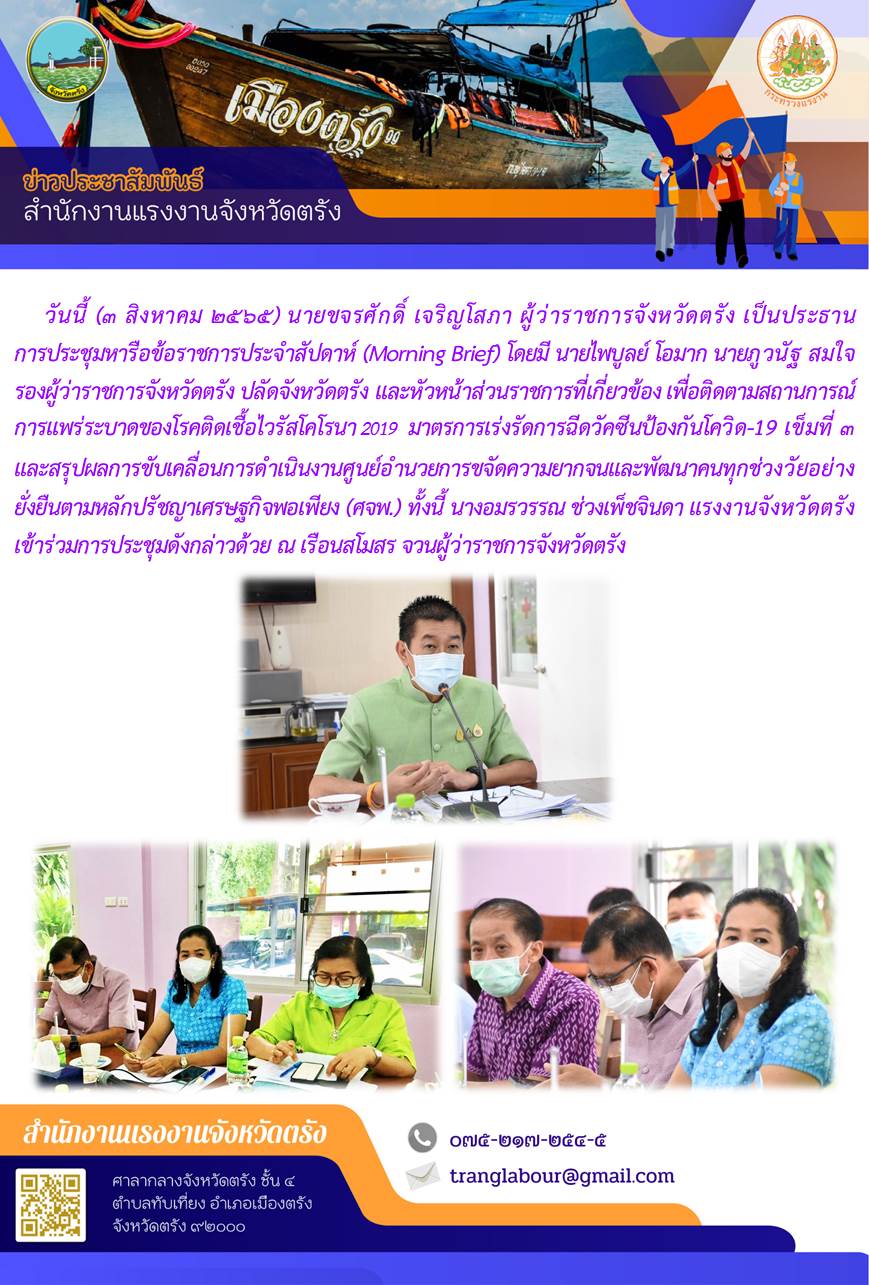 แรงงานจังหวัดตรัง ร่วมการประชุมหารือข้อราชการประจำสัปดาห์ (Morning Brief)