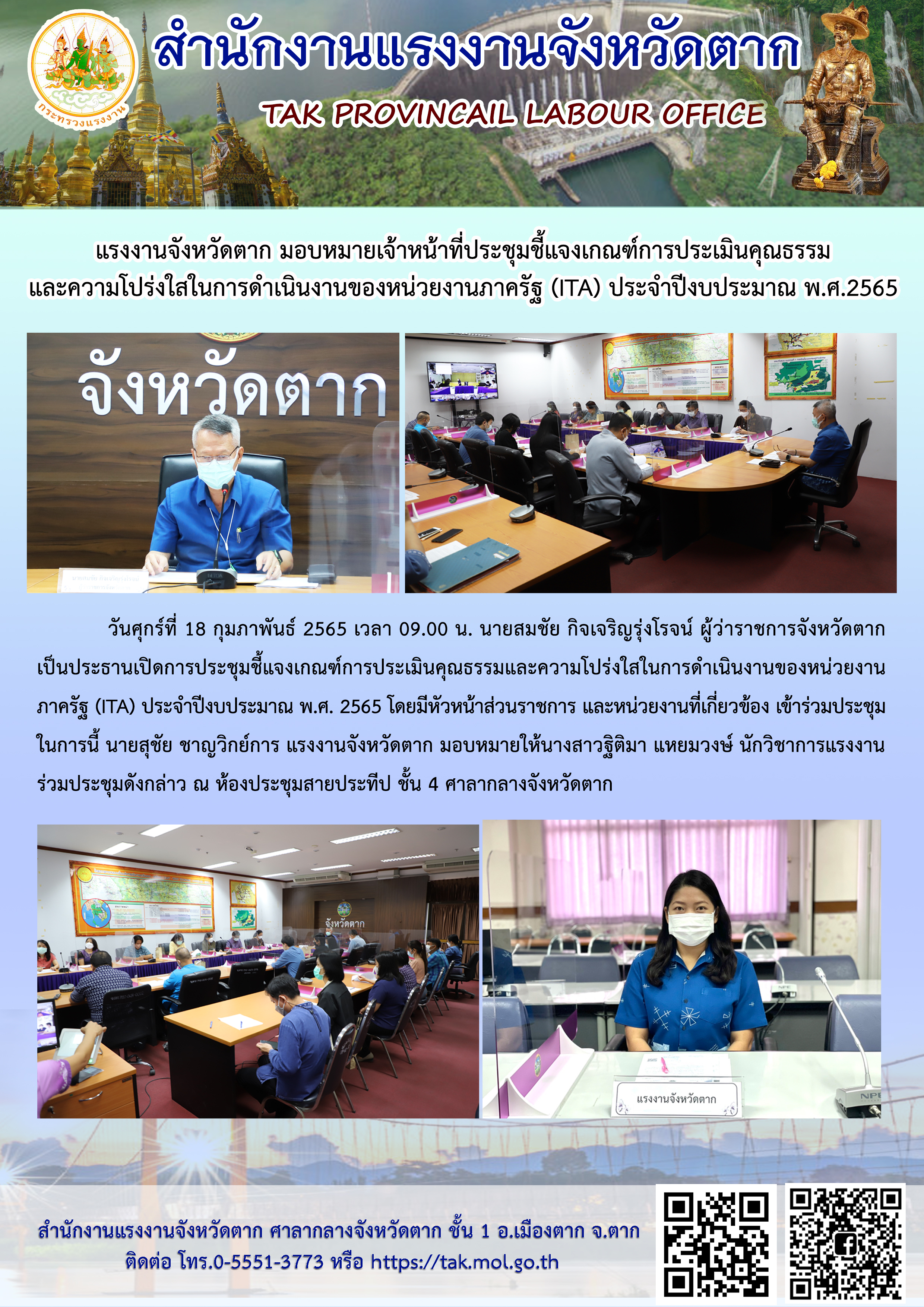 สรจ.ตาก ร่วมประชุมชี้แจงเกณฑ์การประเมินคุณธรรมและความโปร่งใสในการดำเนินงานของหน่วยงานภาครัฐ (ITA)